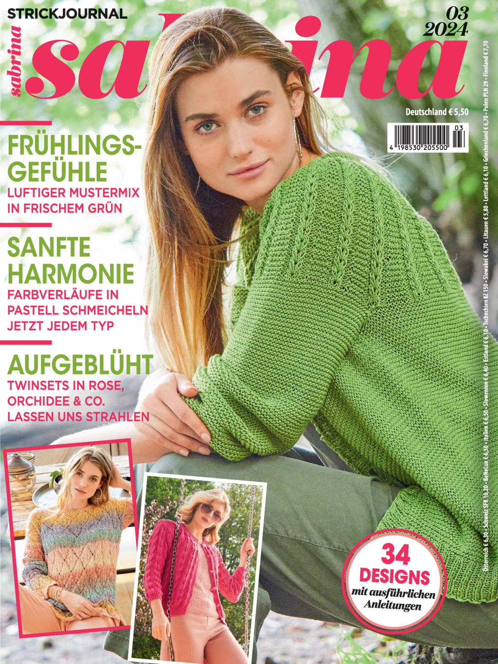 Frühlingshaft mit viel frischem Grün zeigt sich die aktuelle Ausgabe Nr. 3/2024 der Sabrina! Adieu Wintertristesse, hier kommen die neuen Garne der Saison – farbenfroh und mit viel Fantasie in Anlehnung an die Natur: blühende Gärten, frisches Blattgrün, strahlende Rosen – wir lieben diese Farbenpracht! Wer es dezenter mag, kommt natürlich auch nicht zu kurz: Wir haben zauberhafte Verlaufsgarne in Pastelltönen für dich entdeckt. Strick dir deine neue Frühjahrsgarderobe unter dem Motto: reinschlüpfen und direkt wohlfühlen. Wie immer werden alle Strickpullover, Strickjacken, Strick-Twin-Sets und Strickkleider mit ausführlichen Anleitungen beschrieben. Wenn du gerne strickst und neue Muster und Inspirationen suchst, bist du mit unserer Strickmode in der Sabrina goldrichtig. Luftige Ajourmuster und ausgereifte Schnitte kennzeichnen die neuen Frühlings-Stricklieblinge!