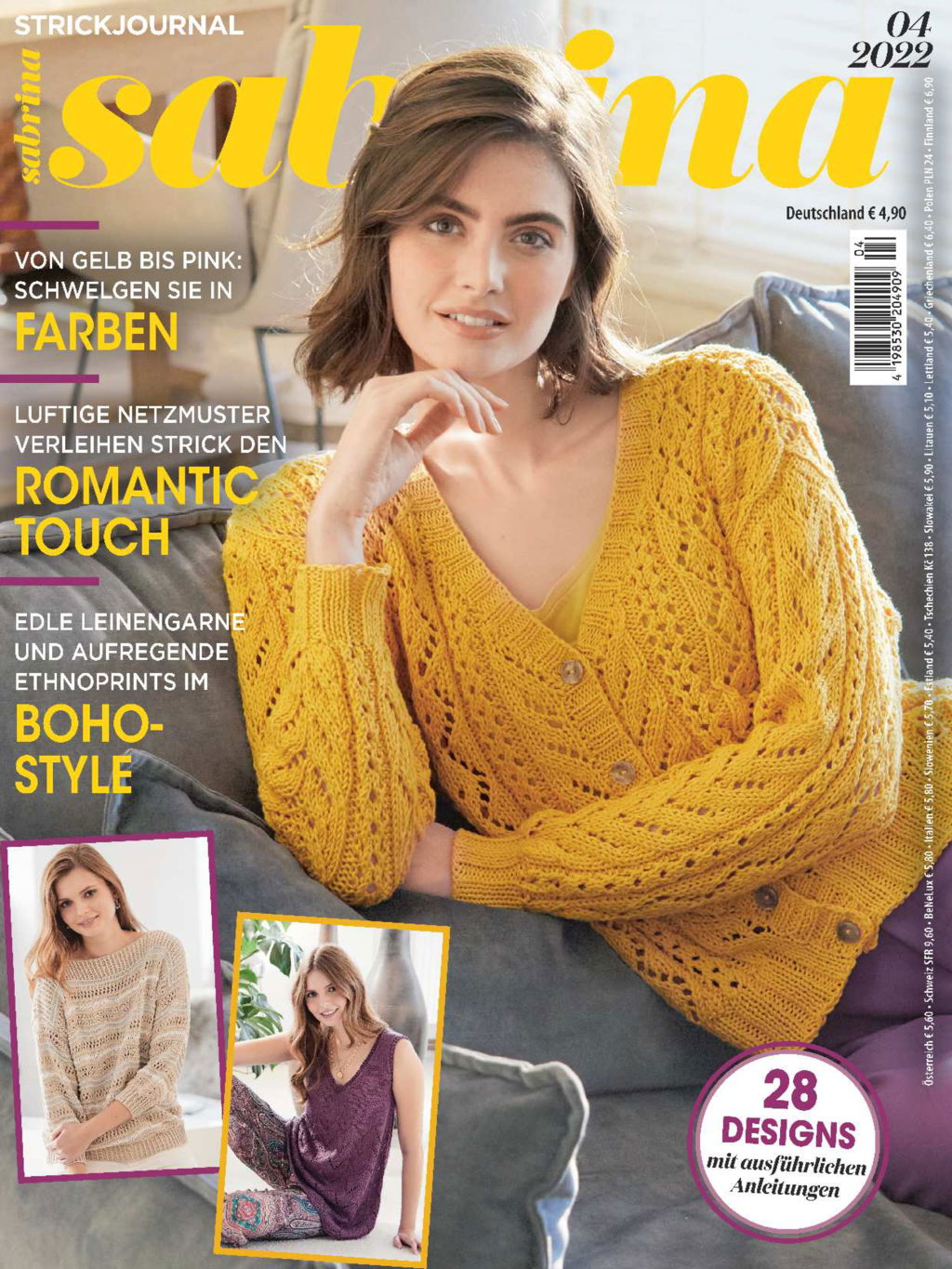In der Sabrina Nr. 4/2022 lassen wir die Sonne rein! Wir zeigen dir Strickanleitungen für Strickkleider, Strickshirts, Kurzarmpullis und luftige Strickjacken. Tiefe V-Ausschnitte und jede Menge Ärmelvariationen lassen Luft und Sonne an die Haut. Die kreative Mustervielfalt macht Lust auf Stricken und sorgt für raffinierte Einblicke bei Strickpullis, Shirts und Stricktüchern. Du liebst leuchtende Farben? Wie schön, wir haben die schönsten Strickmodelle in Orange, Pink, Smaragd und Lila. Oder magst du lieber die leisen Töne? Dann wirst du mit Freude unsere romantischen Stricksachen in Muscheltönen stricken. Für Liebhaberinnen von feinen Garnen gibt es Boho-Looks mit edlen Leinengarnen. Und Sonnenanbeterinnen stricken mit uns den Frühling in die Masche: die neuen Gelb- und Koralletöne fühlen sich schon fast wie Sonnenstrahlen auf der Haut an. Wenn du Lust hast, verrate uns, welches dein neues Lieblingsmodell ist und von dir jetzt gestrickt wird!