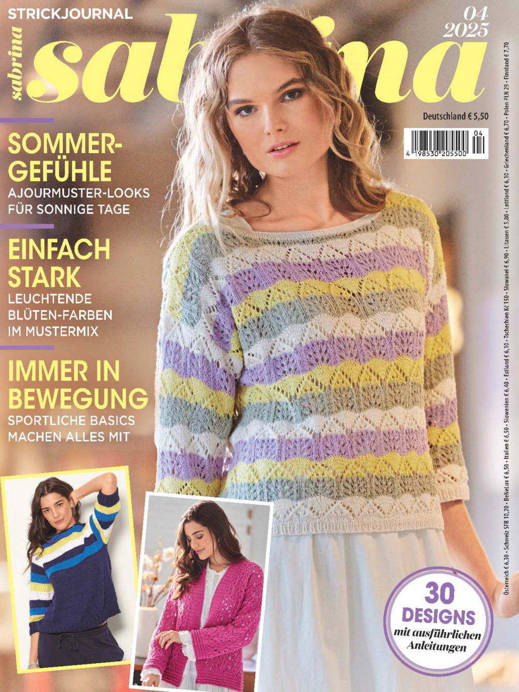 Willkommen im Frühling! Endlich sind die frischen Farben wieder eingezogen, und so auch in der neuen Sabrina 4/2025! Du hast die Wahl: bist du eher der dezente Typ mit einer Vorliebe für Pastelltöne? Dann werden dich unsere Mustermix-Modelle in zartem Apricot, sowie Flieder & Co. begeistern. Wenn du Farbkraft liebst, dann schwelge mit uns in starken Strick-Looks, die mit den farbenprächtigen Frühblühern um die Wette strahlen. Unser Highlight: wir stricken die ersten Ajourmuster, mit denen du endlich wieder etwas Haut zeigen kannst! Zieht es dich auch wieder verstärkt nach draußen? Wir alle freuen uns auf die Zeit draußen in der Natur: zum Entspannen, zum Bewegen, in jedem Fall, um wieder frische Luft und Licht in unseren Alltag zu lassen. Strickmodelle, die alles mitmachen, bequem geschnitten sind und noch dazu farblich deine gute Frühlings-Laune unterstreichen, kommen jetzt genau richtig! Wie immer werden alle Stricksachen mit ausführlichen Strickanleitungen beschrieben, sodass das Stricken zum Vergnügen wird!