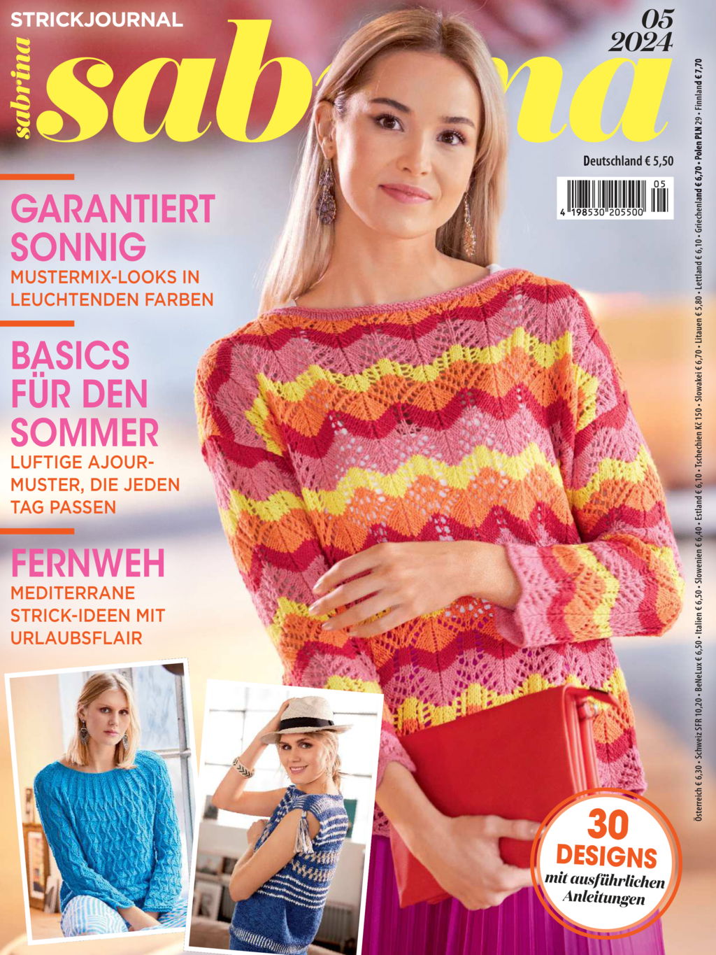 Er kommt, der Sommer! In der aktuellen Sabrina Nr. 5/2024 wollen wir in feiern, in all seinen Facetten. Mit frischen Farben, inspiriert von saftigen Früchten wie Orangen, Zitronen oder Pampelmusen. Mit herrlich luftigen Ajourmustern, die am besten in den schillernden Nuancen des Meeres leuchten. Und natürlich darf auch ein frischer Mustermix nicht fehlen, der sowohl Ajourmustern Raum gibt als auch spannende und teilweise anspruchsvolle Strickmuster-Kombinationen vereint. Träumst du auch schon von deinem Sommerurlaub? Hier findest du traditionelle Strickmuster und Looks aus südlichen Ländern in neuen Interpretationen. So vereinen wir höchsten Strickgenuss mit maximalem Urlaubs-Feeling! Du bekommst Inspirationen für Strickpullover, Strickshirts, Stricktops und viele tolle Strick-Accessoires für einen luftigen, bunten Sommer. Wie immer sind alle Strickanleitungen ausführlich beschrieben. Strick dir die Vorfreude auf den Urlaub mit deinem neuen Lieblingsmodell!