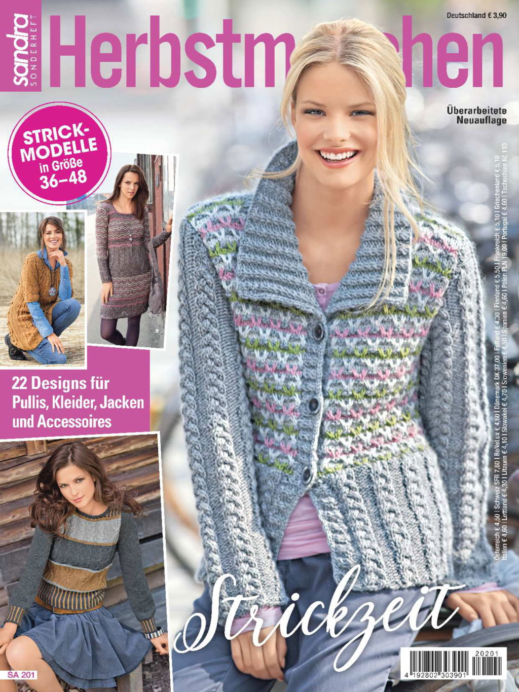 Für die kühleren Tage des Jahres bietet diese Zeitschrift 22 modische Damenstrickmodelle.Plakative Hebemaschen- und Wellenmuster sowie Rippen-, Zopf- und Wabenmuster – all diese Strukturen lassen Strickerherzen höher schlagen. Sie finden sich in kuscheligen Jacken und spannenden Pullis mit Passen, in Minikleidern und einem tollen Strickmantel. Auch die trendigen Jacquardmuster dürfen nicht fehlen, so wartet ein tolles Trio aus Pulli, Mütze und Tasche. Wer es romantisch und feminin mag, wird den zarten Ajourmusterpulli mit locker drapiertem Schalkragen, Keulenärmeln und eingezogenen Satinbändern lieben. Die Modelle lassen sich dank ausführlichen Anleitungen und übersichtlichen Strick- und Zählmustern gut nacharbeiten.