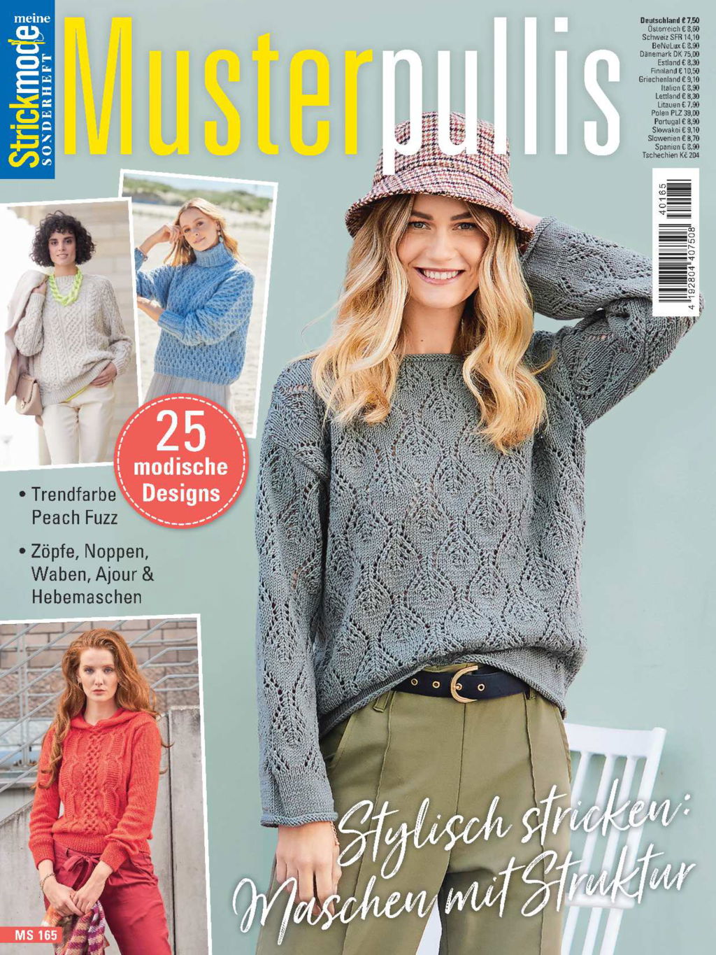 Bei den 25 Anleitungen für aktuelle Strickdesigns, die euch in dieser Zeitschrift erwarten, stehen die Maschenbilder im Vordergrund: ob Kuscheliges aus der Trendfarbe Peach Fuzz, Zöpfe, Mustermix, Noppen, Hebemaschen, Wabenmuster oder Ajour – euer nächstes Lieblingsteil ist hier bestimmt dabei.