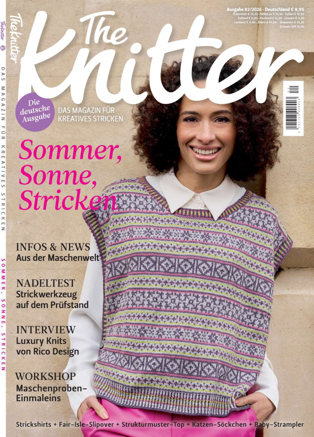 Strickinspiration, anspruchsvolle Strickanleitungen, Reportagen, Interviews und Neuigkeiten aus der Welt des Strickens warten auch in dieser Ausgabe auf euch. Wir präsentieren euch die passenden Strickdesigns für die wärmere Jahreszeit, unter anderem Kurzarmpullis, Pullunder und leichte Jäckchen. Welche Nadeln ihr dafür nutzt, macht in puncto Komfort und Maschenvergnügen einen großen Unterschied. Und so nehmen wir in dieser Ausgabe zwei neue Stricknadel-Angebote unter die Lupe. Außerdem beleuchten wir im Interview mit Rico-Design die Frage, was Luxus beim Stricken wirklich ausmacht. Lasst euch überraschen!