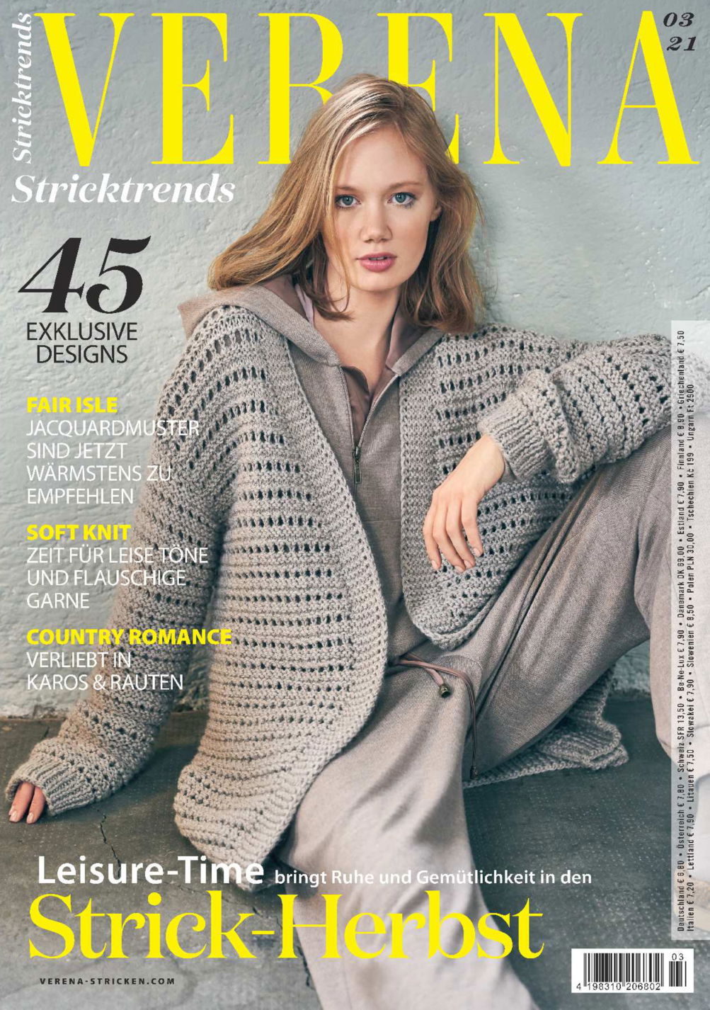 Eine Ausgabe voller kuscheliger Strick-Ideen für den Herbst: Fair Isle ist die angesagte Technik in der Strick-Kunst – Jacquardmuster sind jetzt wärmstens zu empfehlen. Für alle, die jetzt leuchtende Farben wünschen, haben wir knalliges Neongelb mit feinem Lavendel in Einklang gebracht. Und wenn nicht jetzt, wann dann – es ist Zeit für Kuschelmomente. Durch Flauscheffekte entstehen Maschen voller Anmut. Für die Übergangszeit unverzichtbar: lässige Pullis und Jacken im weichen Casual Style. Und unser Lieblingsthema der Saison: Country Romance – hier kannst du Landluft schnuppern mit Karos, Zopfmustern und Rippenstrukturen. Wie immer sind die Designs in der VERENA Stricktrends inspiriert von den Modetrends der internationalen Laufstege. Genau so folgen wir dem Catwalk-Spirit: Cosiness für einen lässigen Strickherbst!