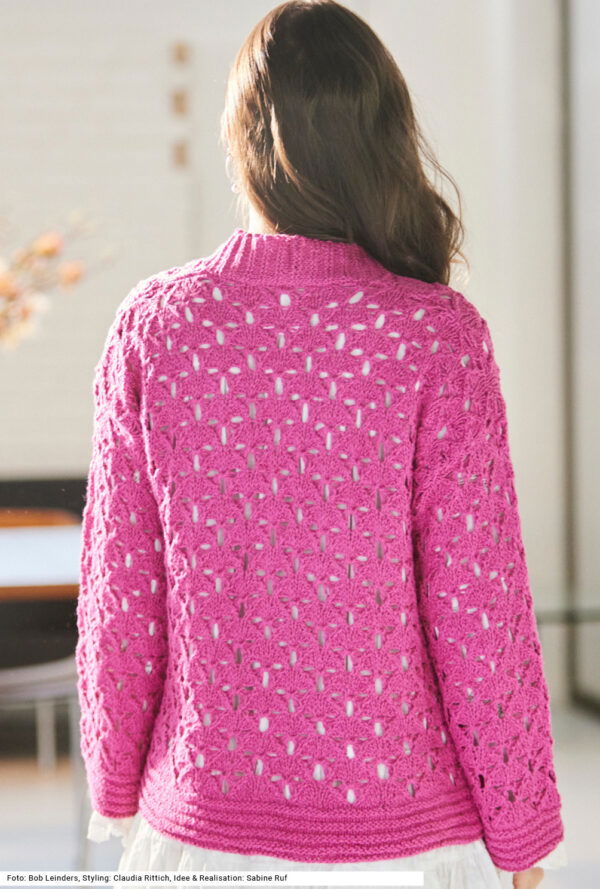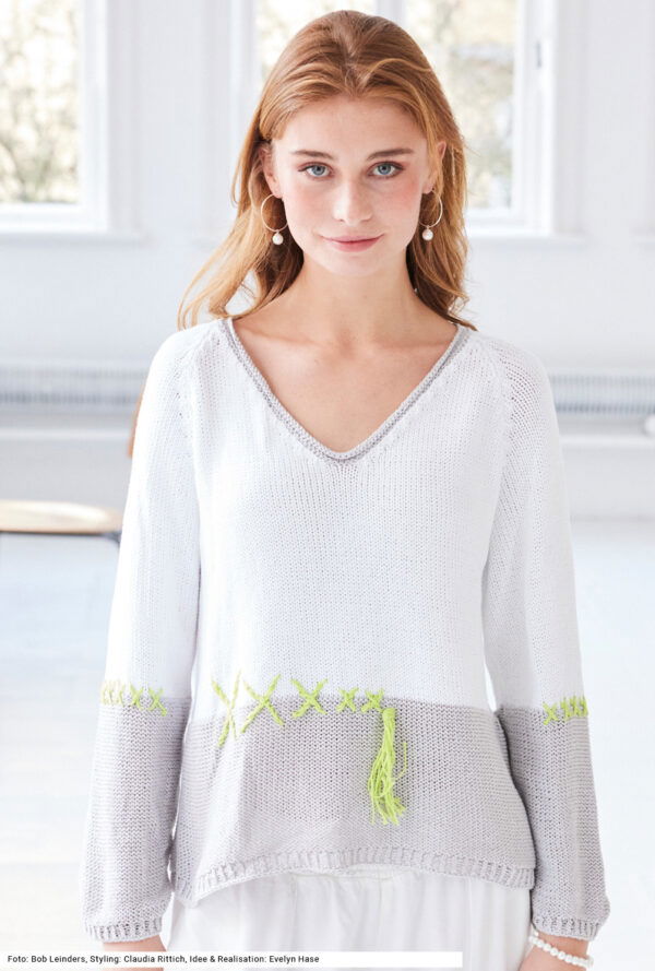 Pulli und Häkel-Tasche mit aufgestickten Kreisen