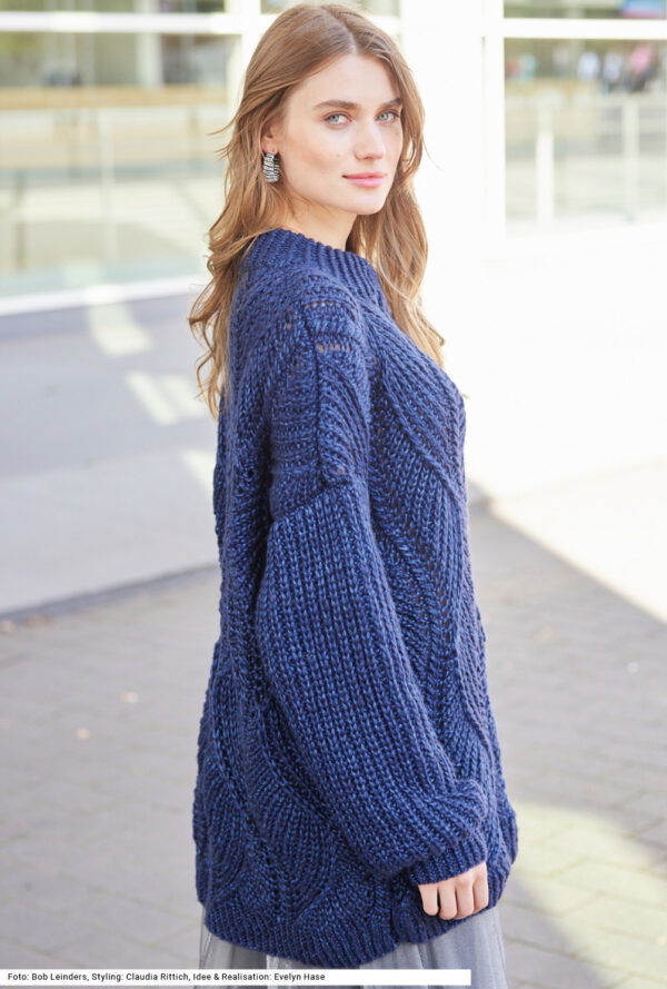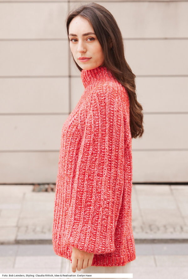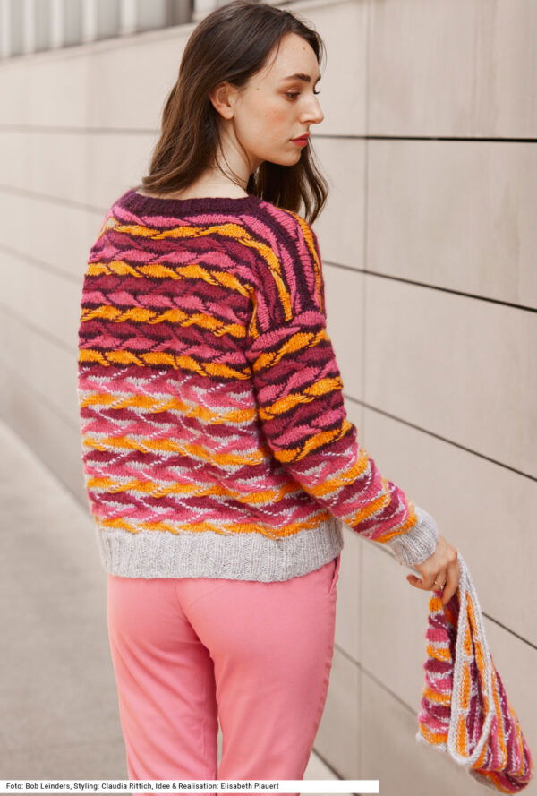 Pullover und Loop mit Hebemaschenmuster in Silbergrau, Aubergine, Fuchsia, Pink und Orange