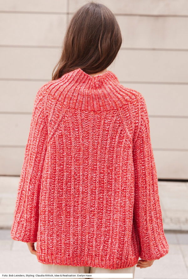 Raglan-Pulli und Schal im Patentmuster in Hummerrosa
