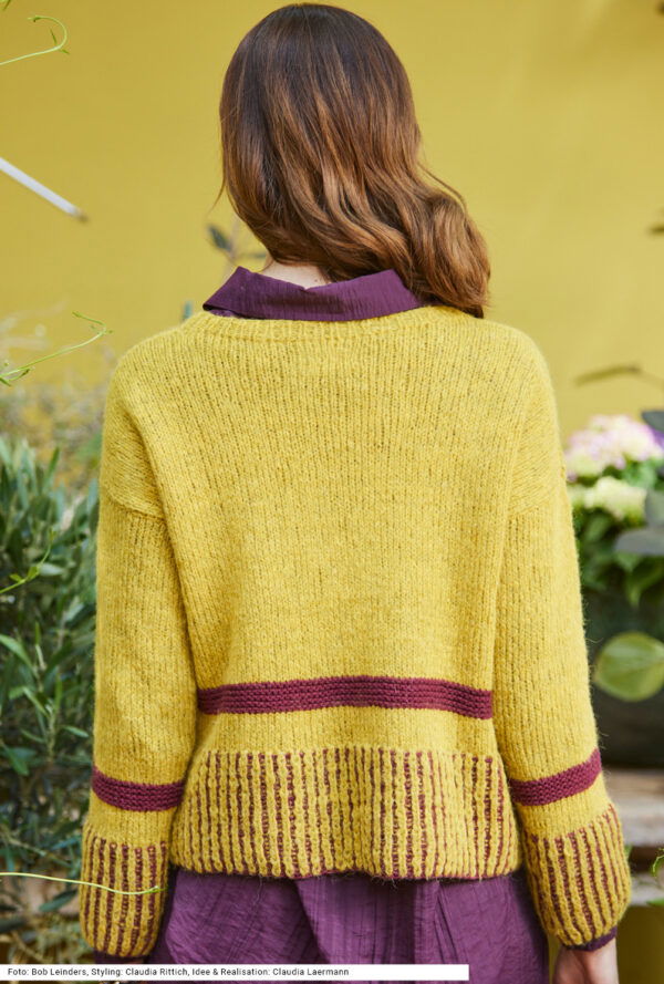 Pulli glatt rechts und mit zweifarbigem Patent in Bordeaux und Curry