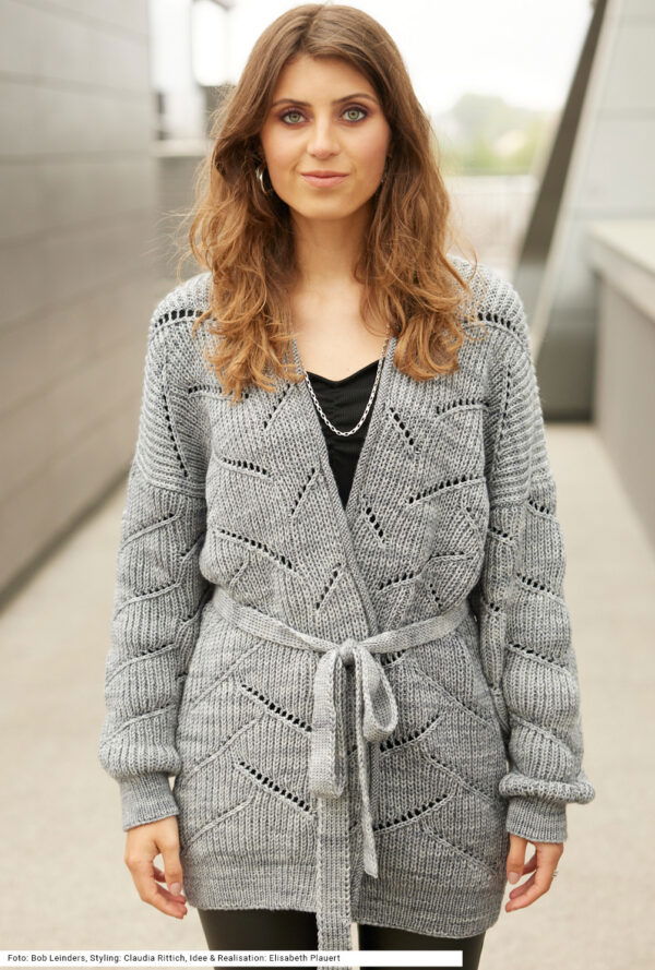 Jacke mit Lochmuster und Gürtel in Hellgrau
