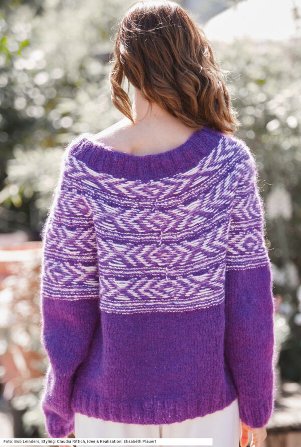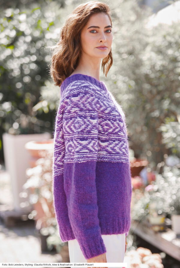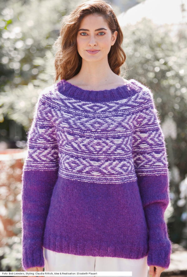 Pulli mit Jacquard-Rundpasse in Violett und Weiß
