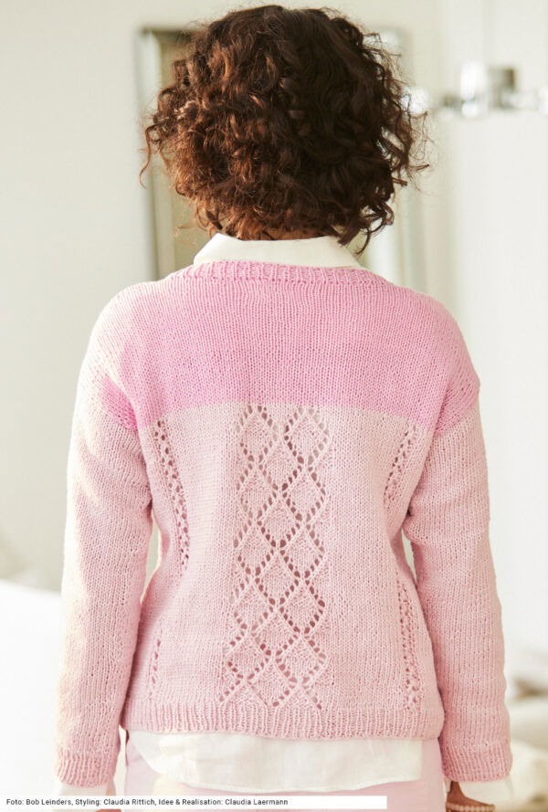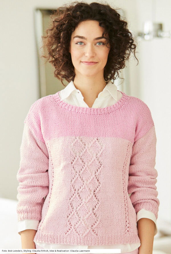 Pullover mit Ajourmuster in Rosa, Pink, Fuchsia, Grau und Weiß