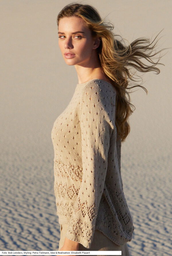 Diagonal gestricktes Top in Leinenfarbe
