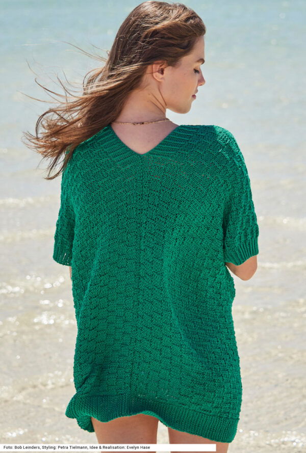 Grüner Pulli mit verschiedenen Lochmustern