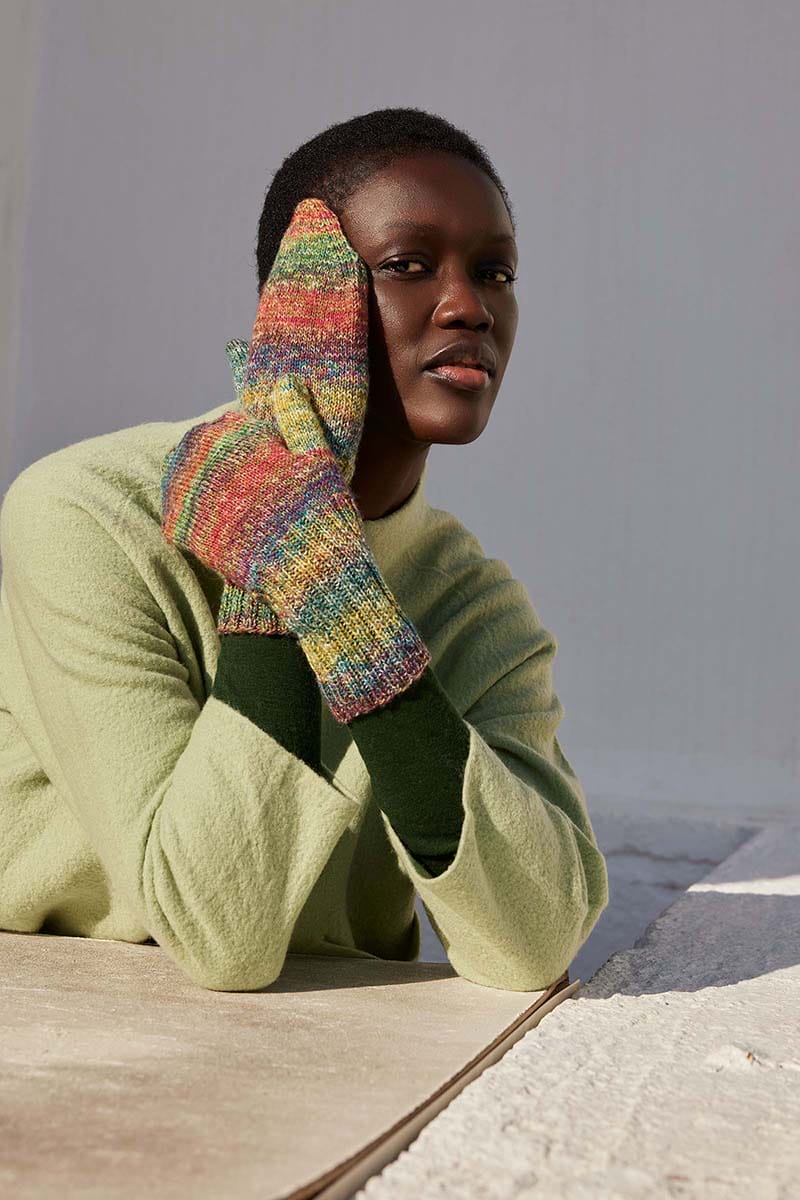 Giving the appearance of shades melting into each other with every stitch, the halo of colors in the HAPPY AURA mittens creates a beautiful blend. Those color transitions also give the mittens a radiant, nearly glowing quality