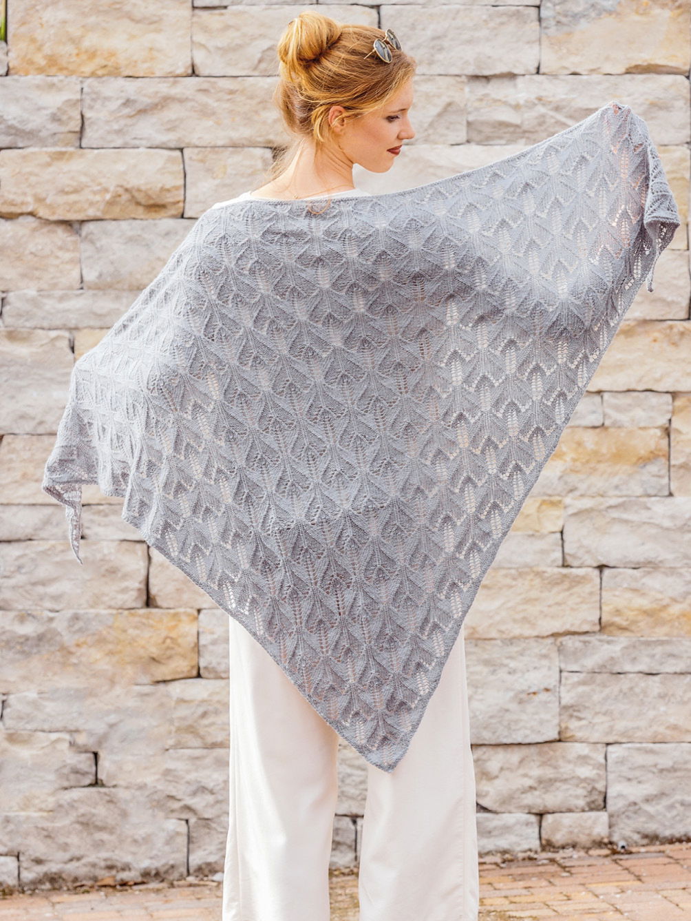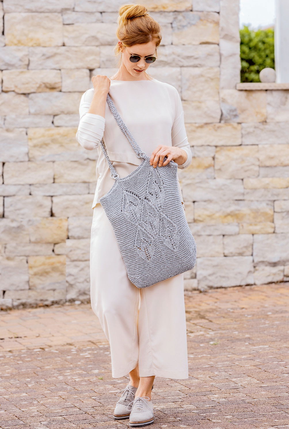 Armstulpen: 31 cm lang, 22 cm Umfang; Tasche: ca 37 cm breit, 36 cm hoch (ohne Träger); Dreiecktuch: ca 108 cm hoch, 165 cm breit