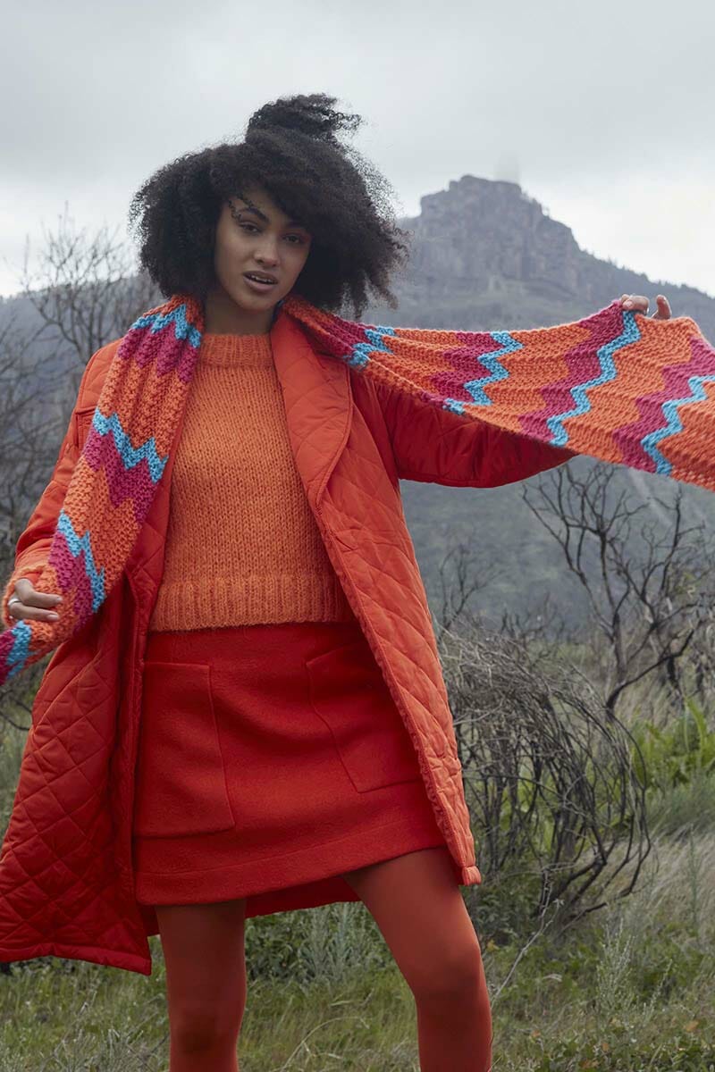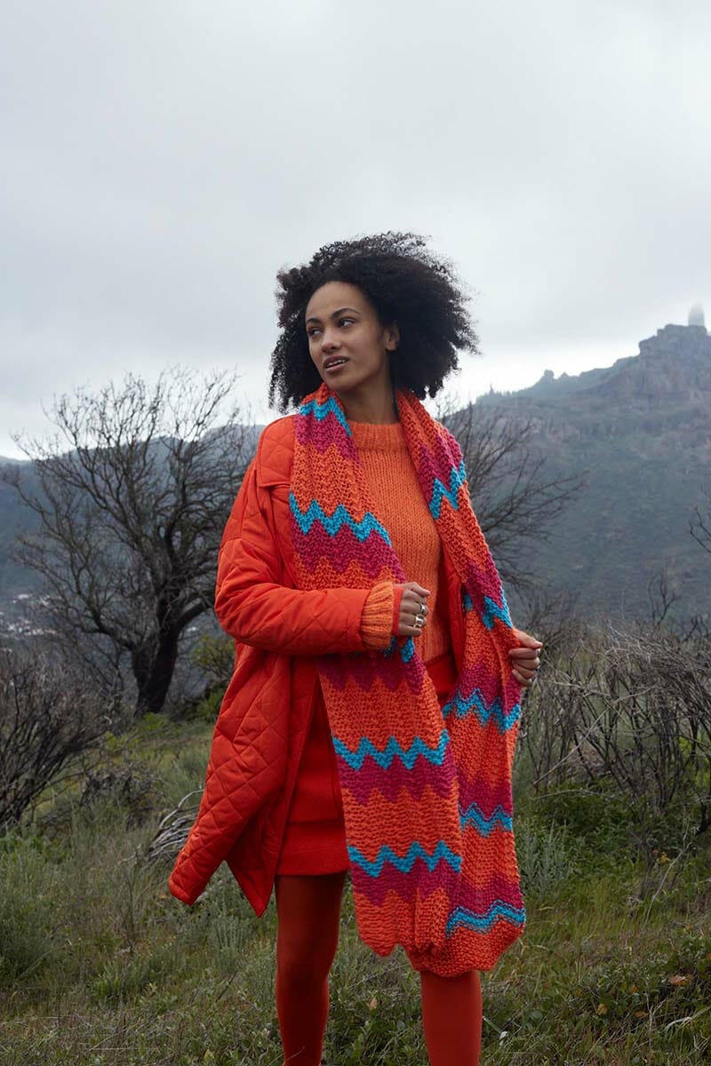 The cool zig zag pattern makes the shawl look like little mountain peaks and valleys that you climb over and over again. Therefore, it perhaps represents that after rain comes sunshine. And in this color combination, you will be the center of attention.