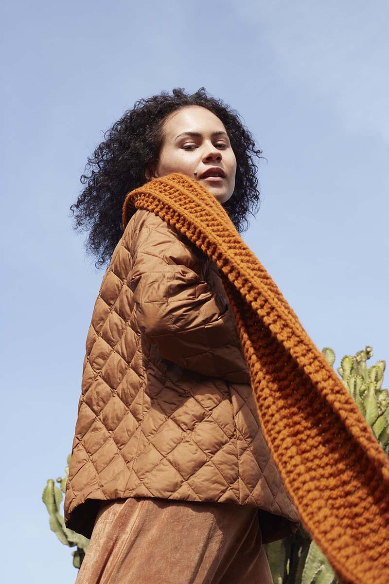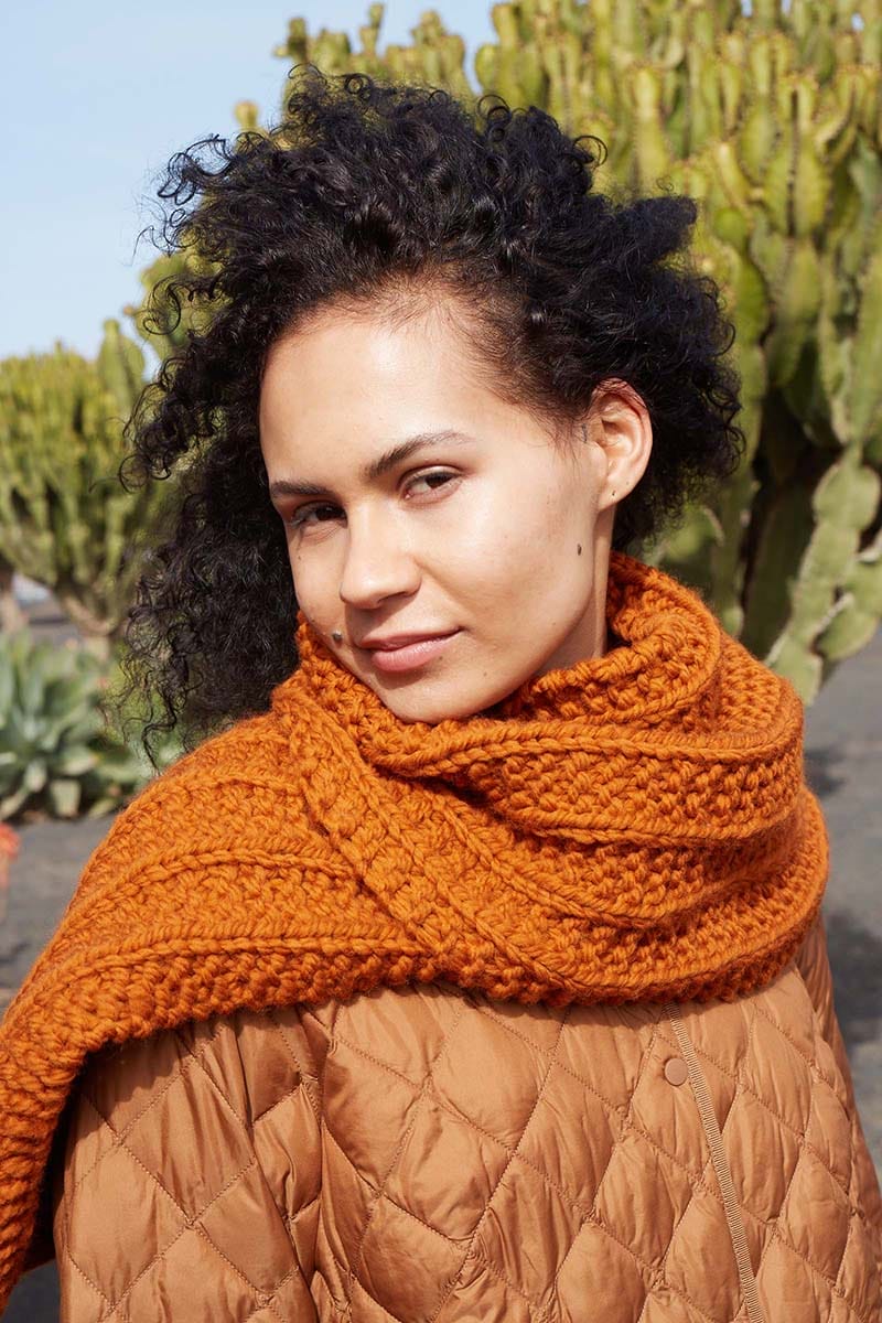 Through a skillful arrangement of knit and purl stitches, a captivating trail unfolds along the entire length of the scarf. Elevated by the use of our most substantial yarn, FIRE, the PIGMENT TRAIL scarf keeps you nice and warm, while also looking really fashionable with any winter outfit.