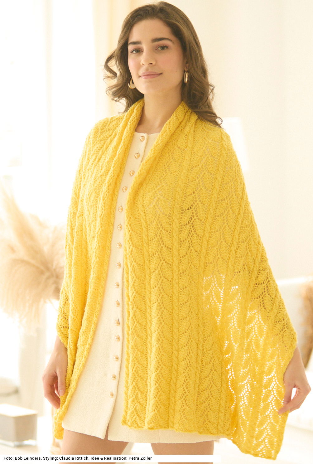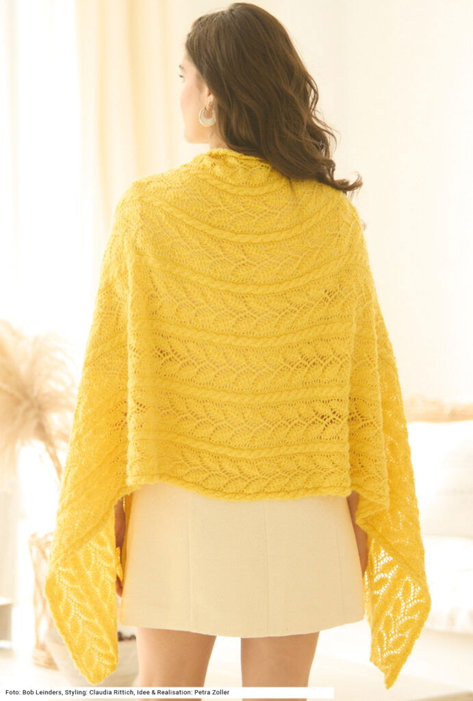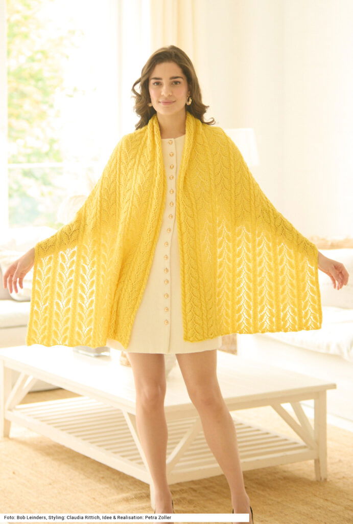 Diese lange, rechteckige Stola begleitet dich ganz sicher nicht nur während der gesamten warmen Jahreszeit, sie macht sich auch gut über einem eleganten Kleid bei einer Einladung im Winter. Das filigrane Ajourmuster sorgt für Luftigkeit, was nicht zuletzt dem Mischgarn mit langer Lauflänge aus Schurwolle, Polyamid und Seide zu verdanken ist. Es begeistert mit seinem weichen Fall, leichtem Glanz und herrlicher Anschmiegsamkeit. Eine Anleitung für die Stola mit einer Größe von 60 x 171 cm gibt es zum Downloaden.