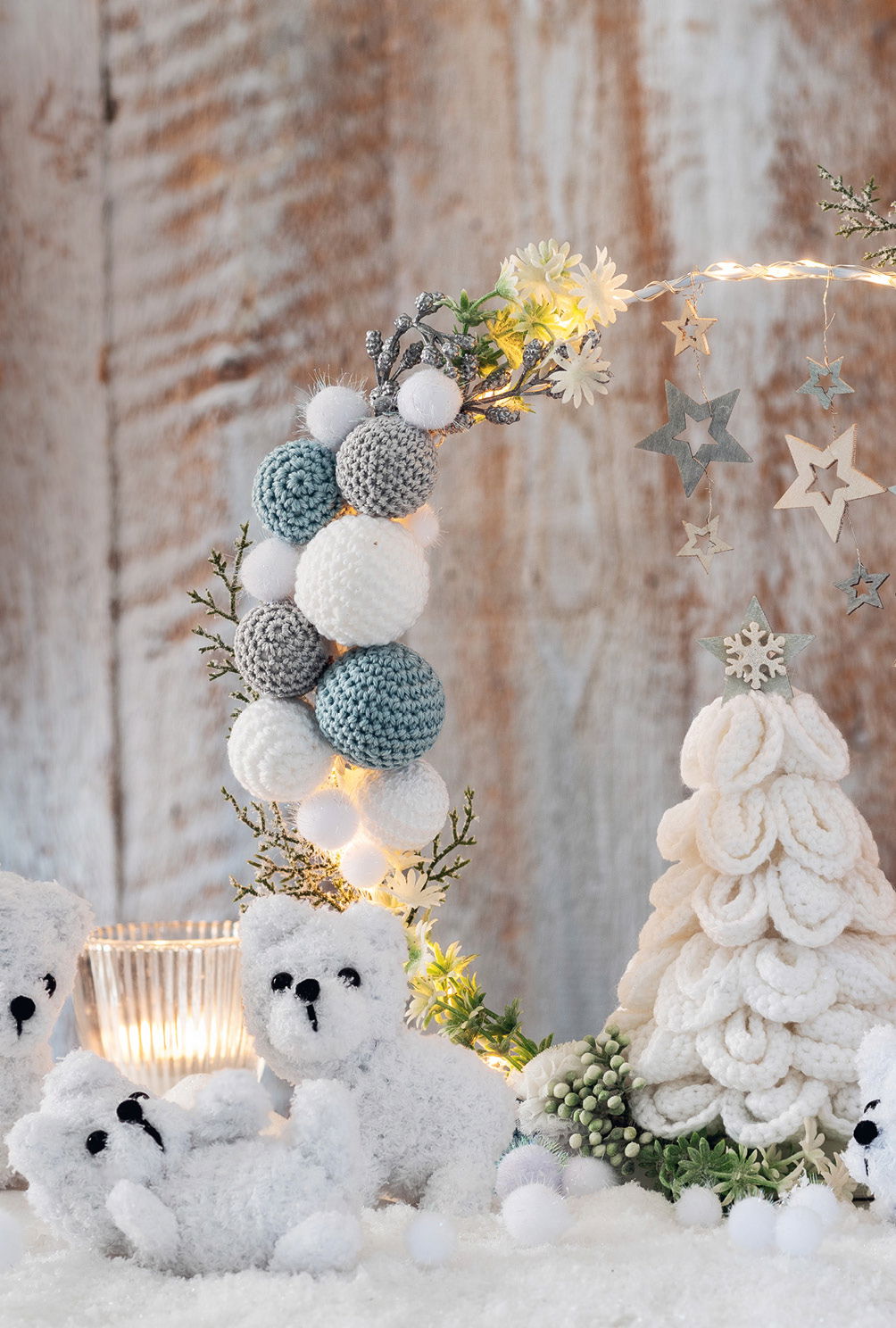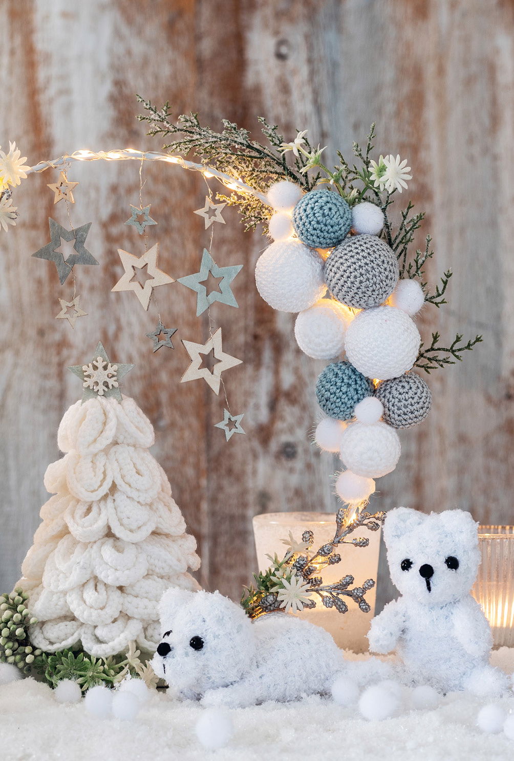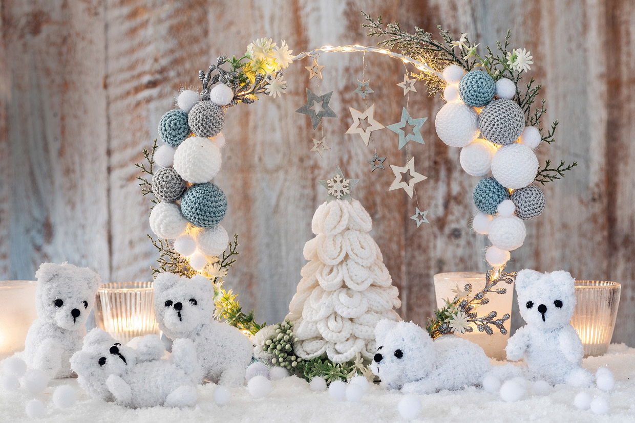 Dekoleuchtring: 33 cm x 35 cm; Eisbären: 10 – 13 cm