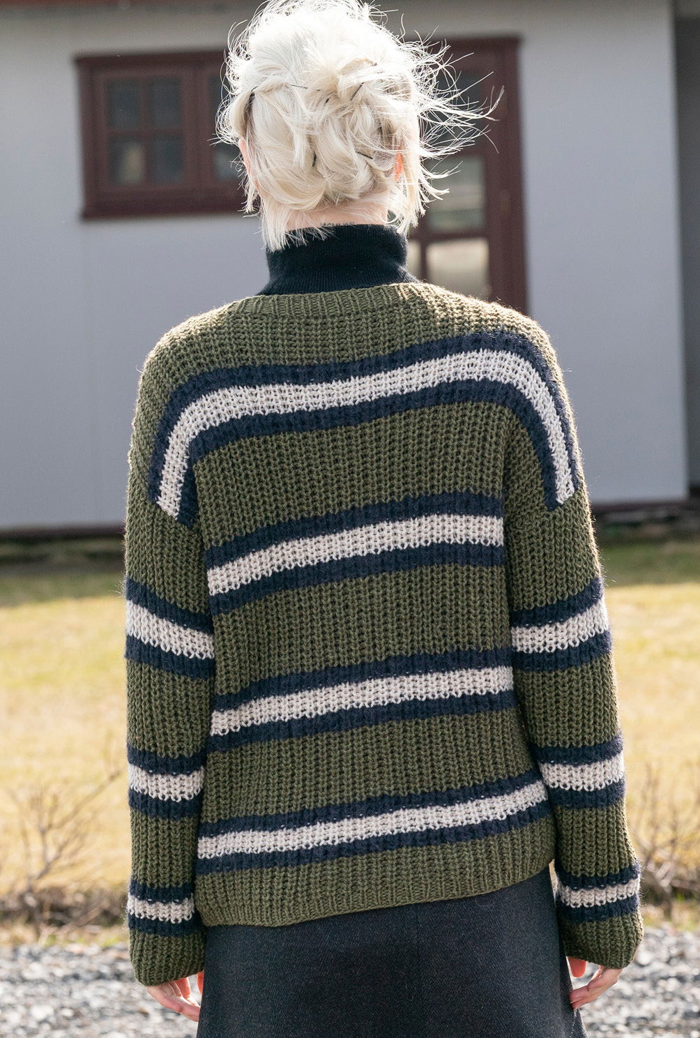Die Vorzüge einer Strickjacke liegen auf der Hand: Sie ist zeitlos, leicht zu kombinieren und rundet Ihre Herbstgarderobe perfekt ab. Dieses Modell wird allover im Halbpatentmuster gestrickt und zwar so, dass die etwas unruhigere Seite außen liegt. Hinzu kommt ein Streifendesign, bei dem sich Oliv, Natur und Schwarz regelmäßig abwechseln und somit für die spannende Optik sorgt. Schmale Rippenblenden und eine Knopfleiste vervollständigen den Look.