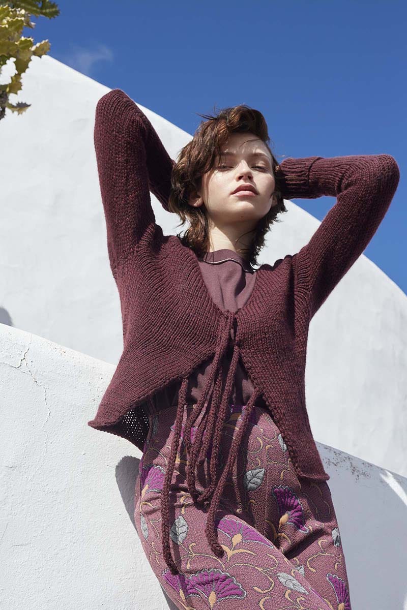 Let your love for knitting and yarn entwine with your life. This cardigan is knit from the top down, eliminating the need to untangle ends when assembling the pieces. As you knit, you can effortlessly try on the cardigan, ensuring the i-cord closure falls precisely into place.