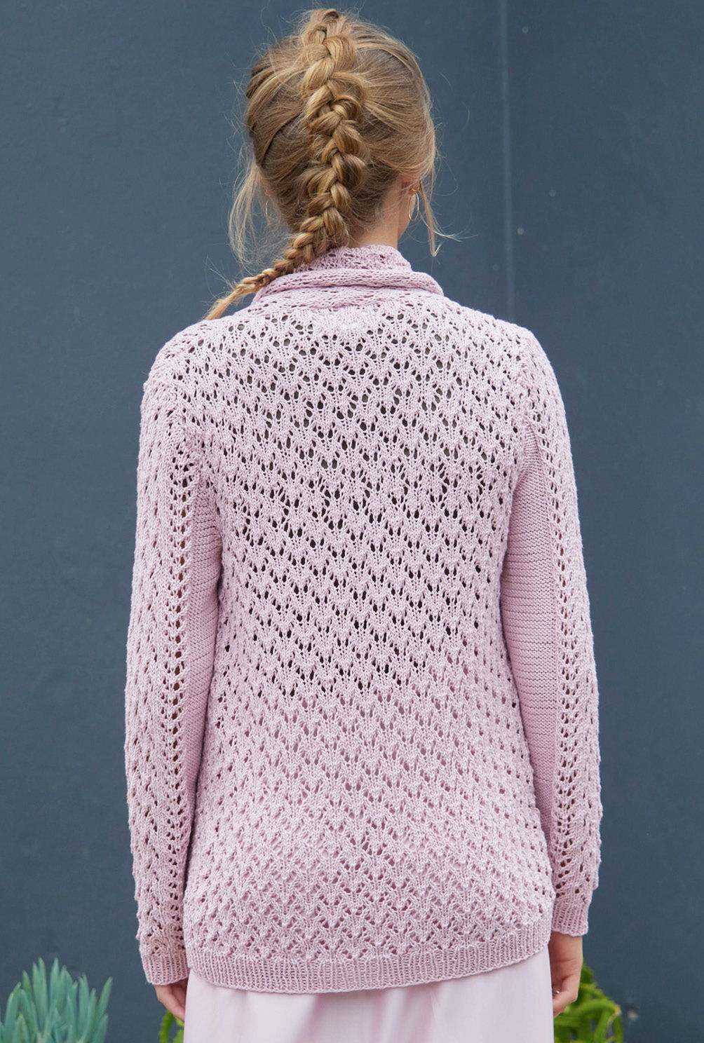 Sabrina Strickjournal Cardigan mit Ajourmuster und Schalkragen in Rosé