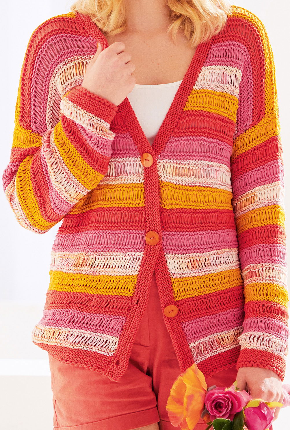 Sabrina Strickjournal Gestreiften Jacke im Fallmaschenmuster in sonnigen Farben