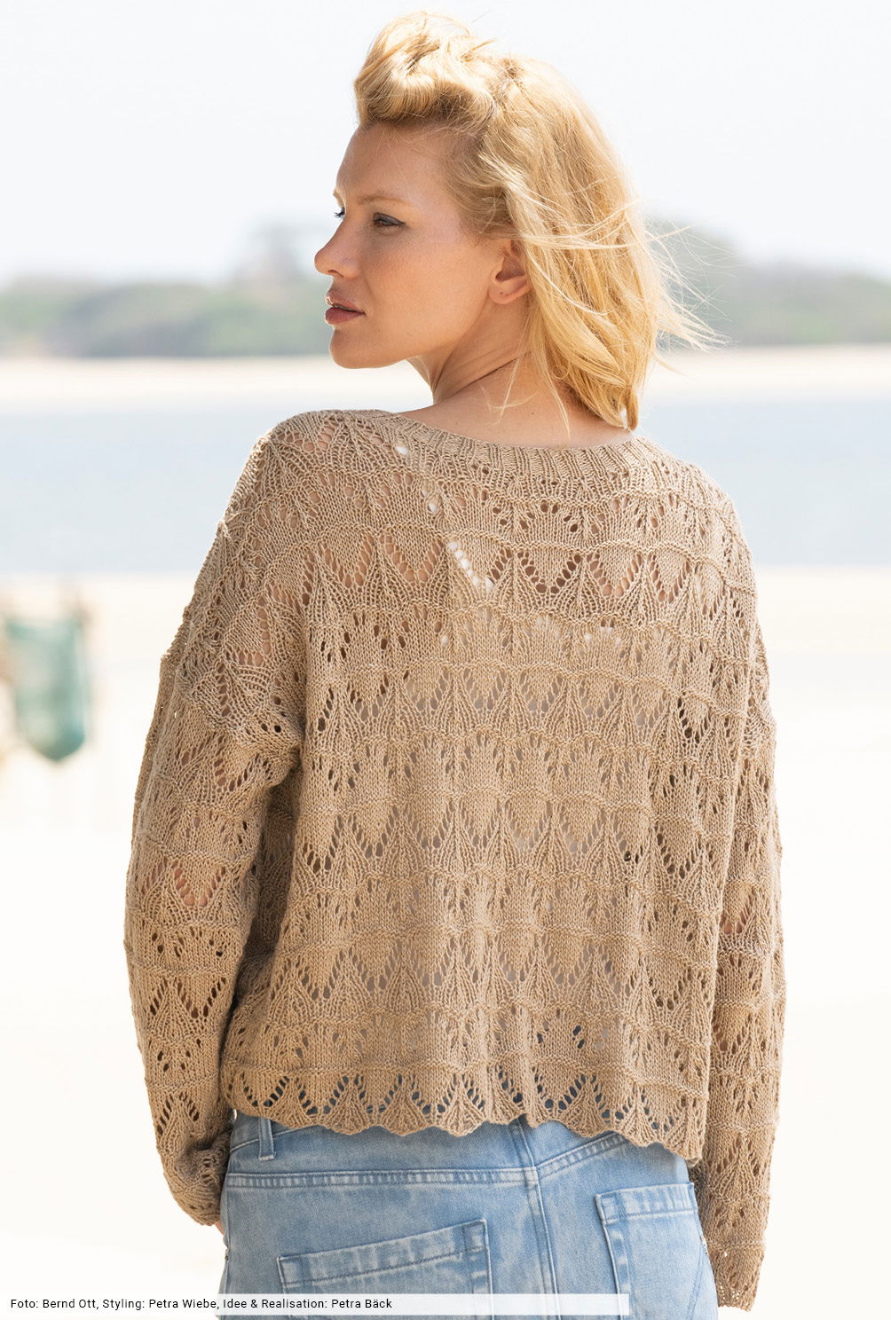 Dir fehlt noch ein hübscher Sommer-Cardigan? Dann ist dieses Jäckchen genau das Richtige. Für das gewellte Ajourmuster gibt es in der Anleitung eine übersichtliche Strickschrift, sodass du sofort loslegen kannst. Zum Schluss an die Vorderteilkanten und den Halsausschnitt einfach die Rippenblende stricken und im oberen Bereich mit Knopflöchern und Knöpfen ausstatten – fertig ist ein Stück, das dich in seinem neutralen Beigeton länger als eine Saison begleiten wird.