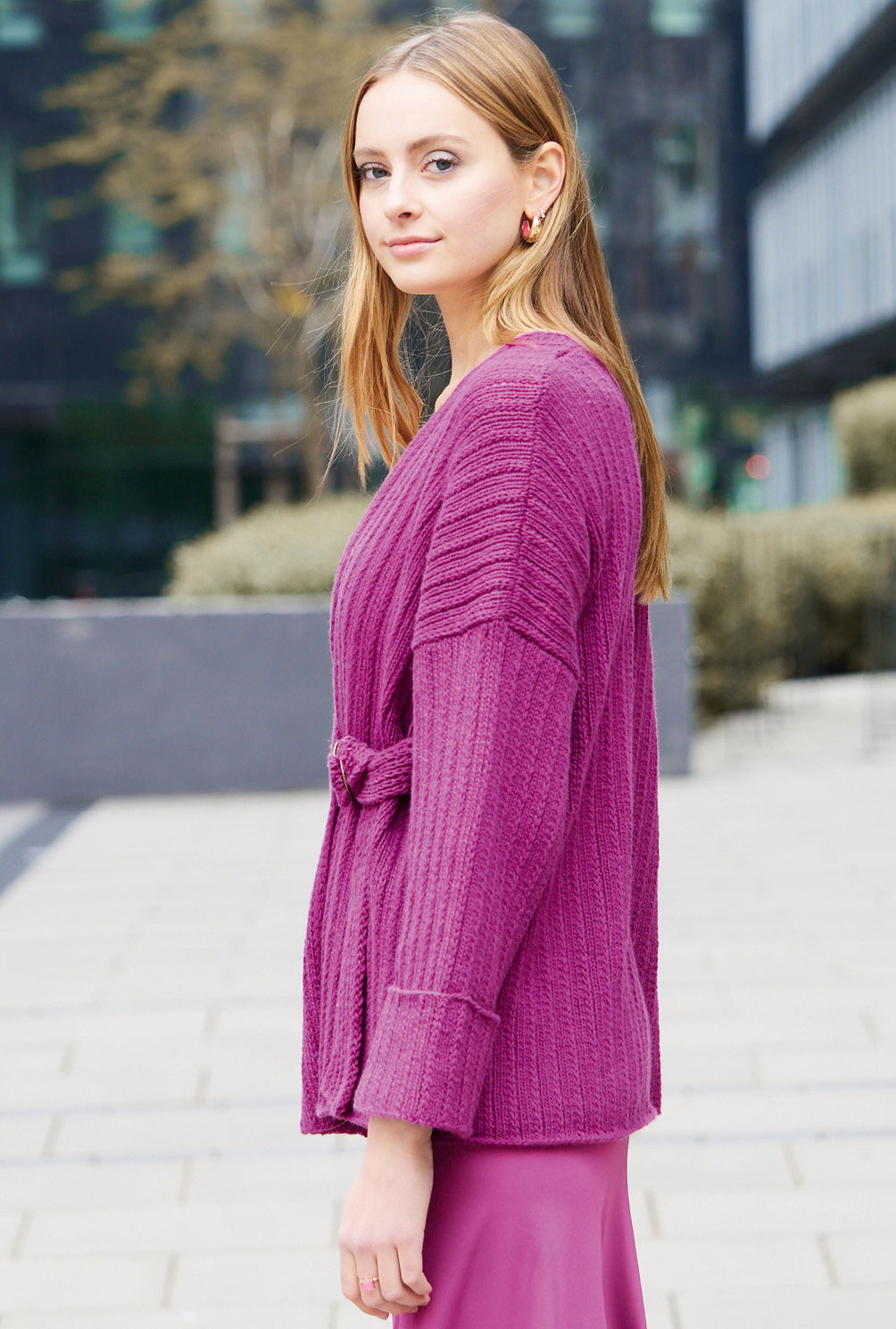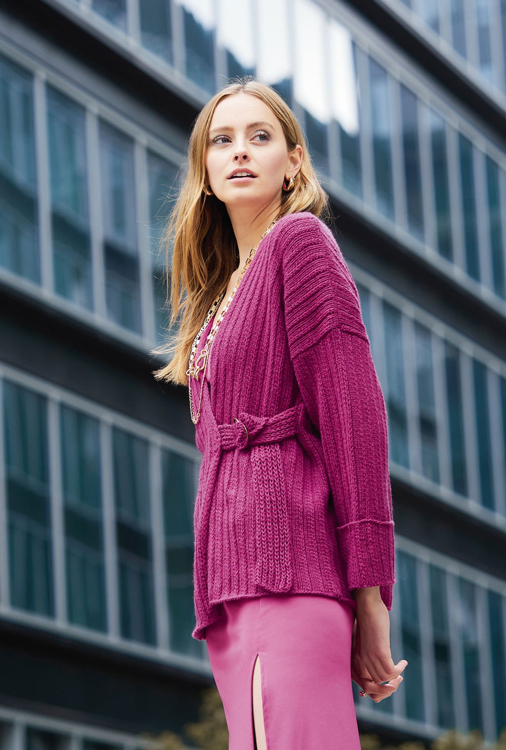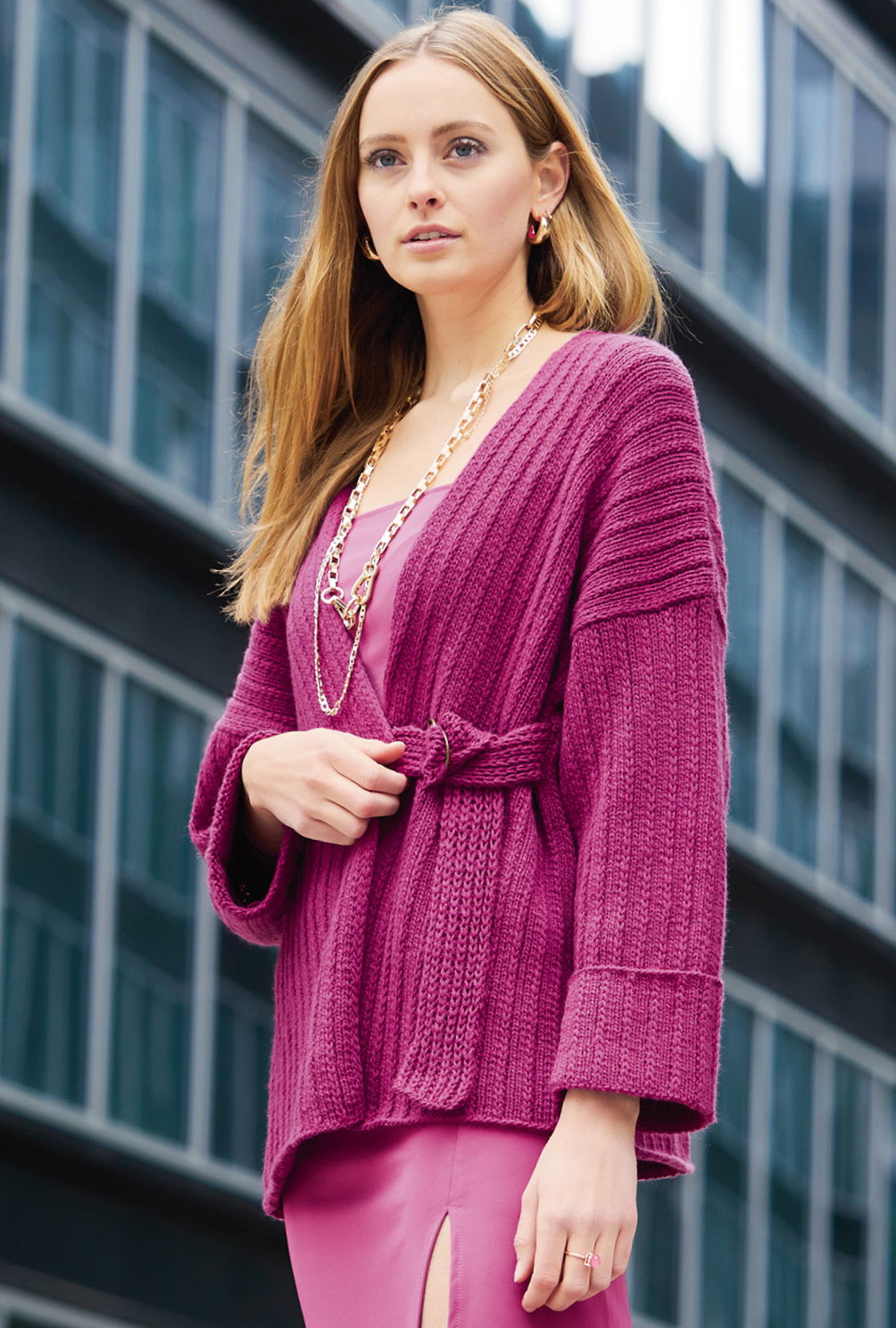 Sabrina Strickjournal Pinkfarbene Poncho-Jacke mit Gürtel