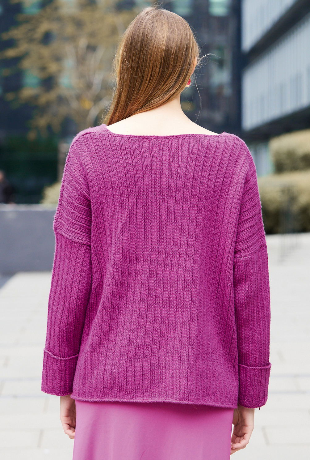 Die Anleitung für diesen Pullover ist in den Größen 34 – 38, 40 – 44 und 46 – 50 verfügbar.