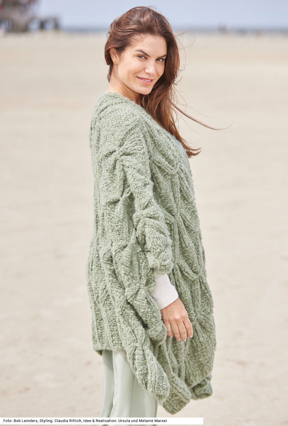 Sabrina Strickjournal Poncho mit Zopfmuster in Grün