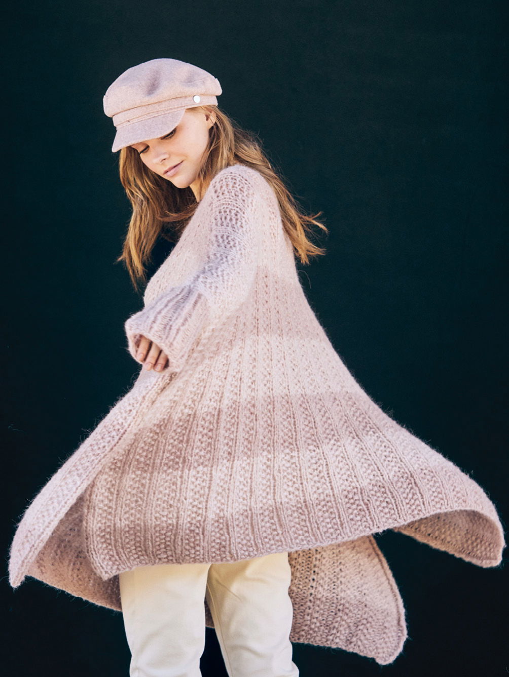 Pulli oder Poncho? Egal, es geht auch beides! Dieses tolle Projekt ist ein echter Traum aus Wolle. Volluminöse Strukturen treffen auf seidenweiches Garn. Die harmonische Streifenoptik entsteht durch den Wechsel zwischen zwei ser ähnlichen Farbtönen. Das bringt Harmonie beim Stricken und Tragen. Das Muster aus Permuster und senkrechten Streifen ist einfach gelernt und schnell im Kopf. Die gerade Passform fällt traumhaft und ist simpel zu stricken. Die Anleitung enthält einen detaillierten Schnitt und eine ausführliche Beschreibung. So steht diesem Projekt nichts mehr im Wege. Und das beste: Durch die Einheitsgröße passt dieser Traum in Rosé wirklich jedem. Perfekt als Geschenk!