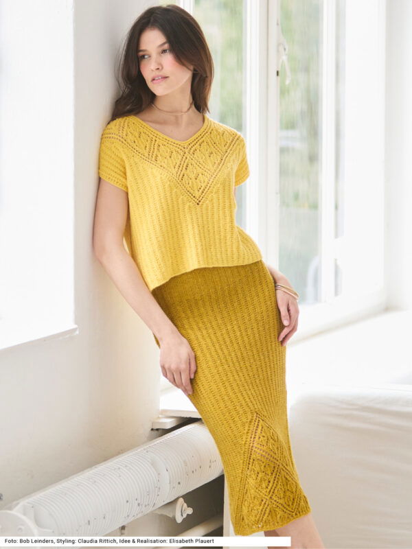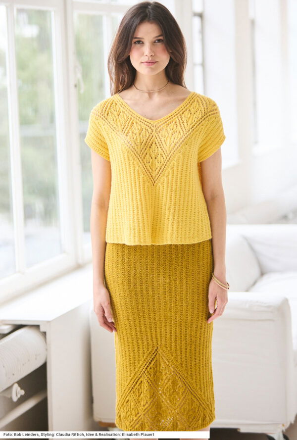 Pulli und Rock mit Ajourmuster-Einsätzen