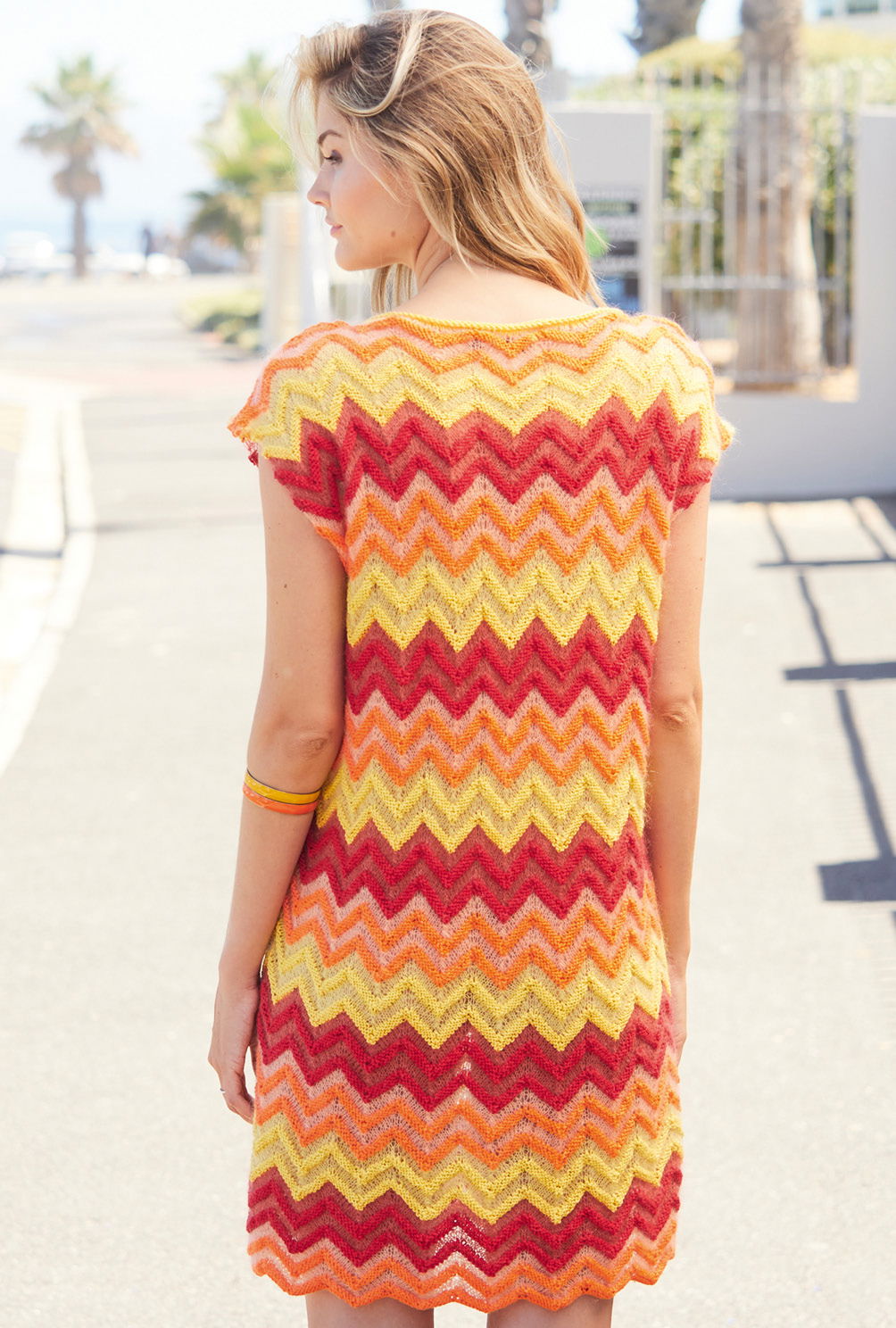 Sabrina Strickjournal Kleid mit Zackenmuster in Gelb, Orange, Rot und Lachs