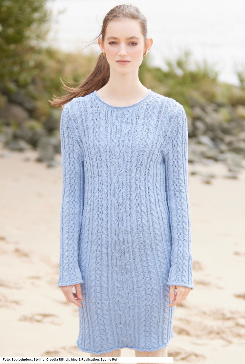 Sabrina Strickjournal Kleid mit Zöpfen in Blau