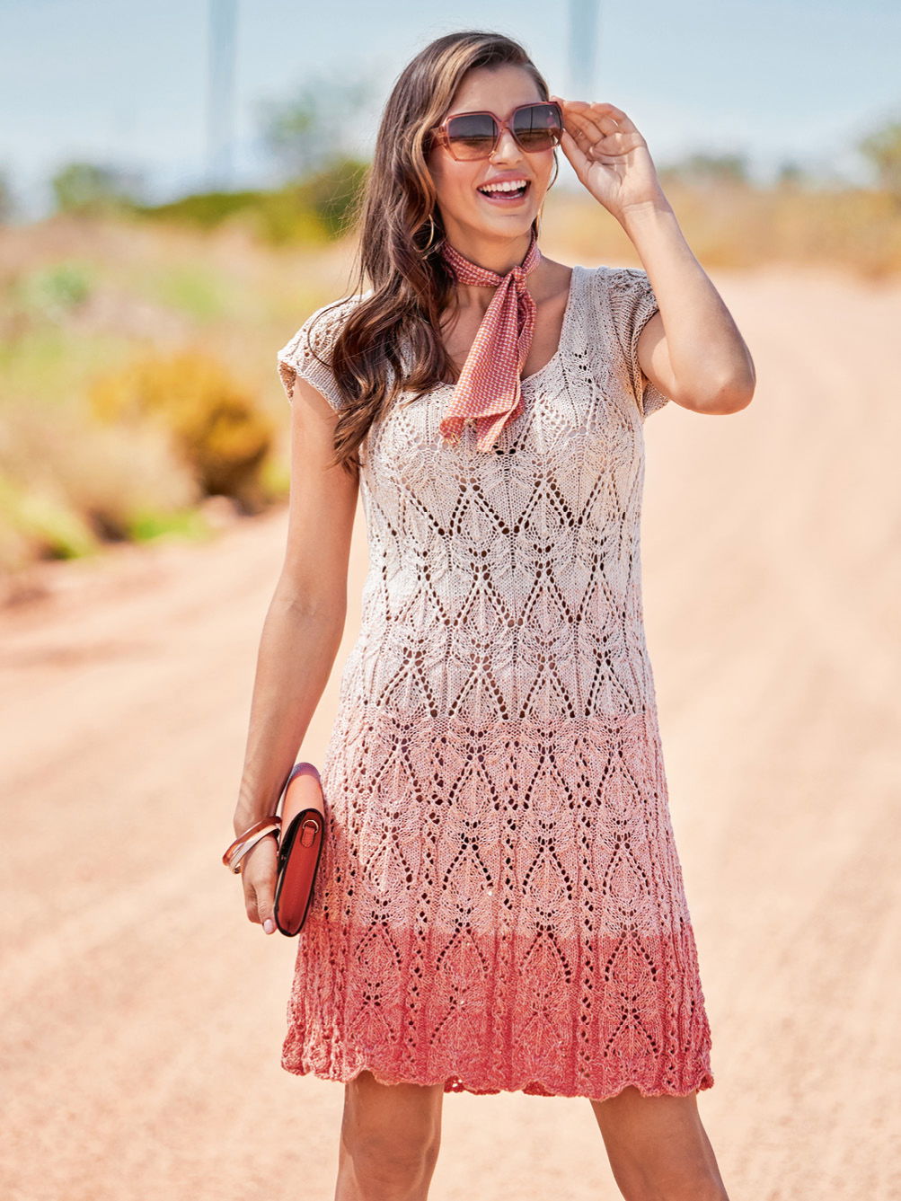 Wichtig für den perfekten Farbverlauf ist es hierbei, sowohl das Vorder-, als auch das Rückenteil des Kleidchens mit jeweils einem Knäuel zu stricken, die Ärmel dann mit den Resten. Auch das Ajourmuster verlangt etwas Aufmerksamkeit, denn hin und wieder werden hier auch die Rückreihen gemustert. Dafür entsteht jedoch auch ein ganz besonders schönes Blattmuster, welches in den zarten Farben des Verlaufs wunderbar zur Geltung kommt. Die sanfte A-Linie des Kleides überzeugt übrigens auch als Tunika getragen!