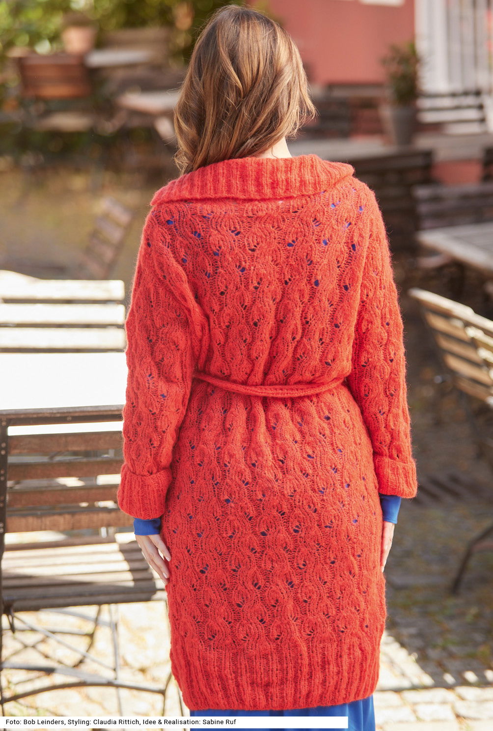 Sabrina Strickjournal Flauschiger Mantel aus Mohairgarn mit Bindegürtel
