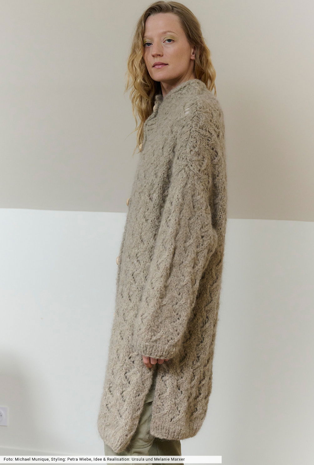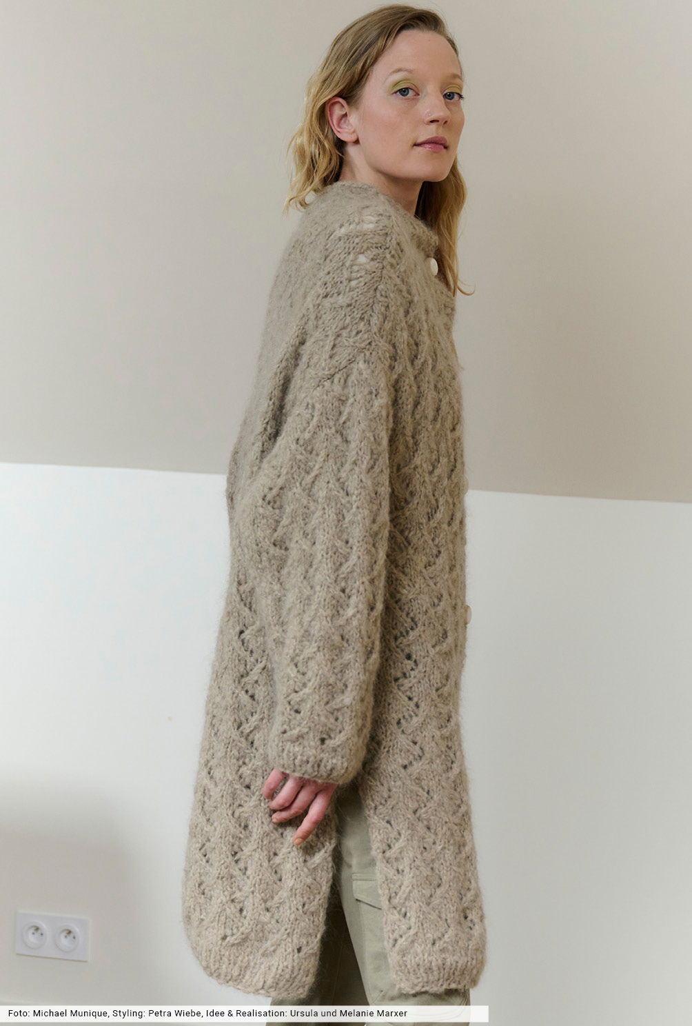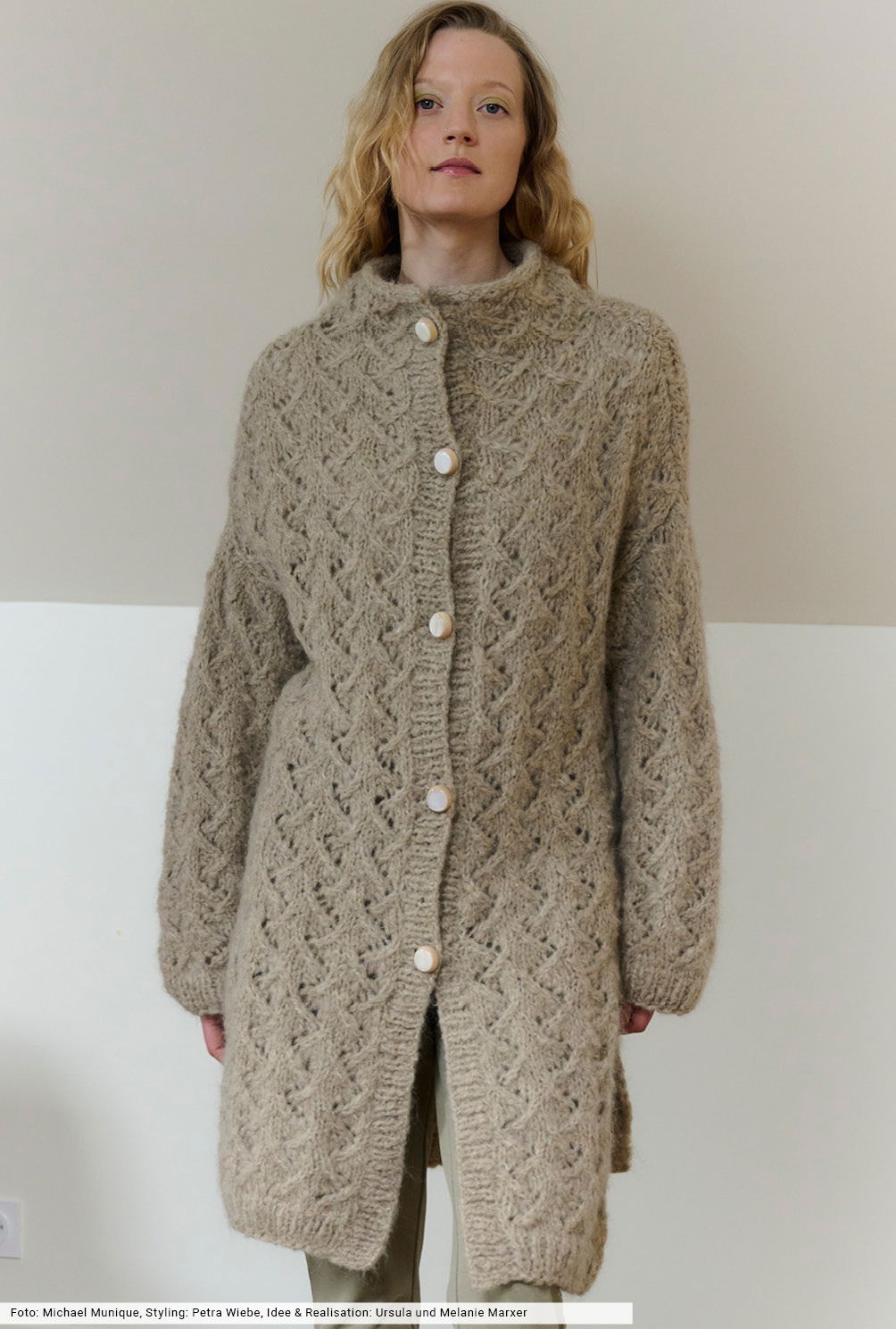 Ein neues, sehr flauschiges Fancygarn bildet die Grundlage für diesen tollen Mantel, dessen Länge bis knapp über dem Knie endet und dessen hohe Seitenschlitze jede Menge Bewegungsfreiheit garantieren. Für das allover angelegte Ajourmuster findest du ein übersichtliche Strickschrift, schnitttechnisch umschmeicheln ausgeprägte Schulterschrägungen und der angestrickte Kragen passgenau die obere Halspartie. Jetzt fehlen nur noch die Knöpfe: Bestelle sie einfach bei dem von uns angegebenen Knopfhersteller.