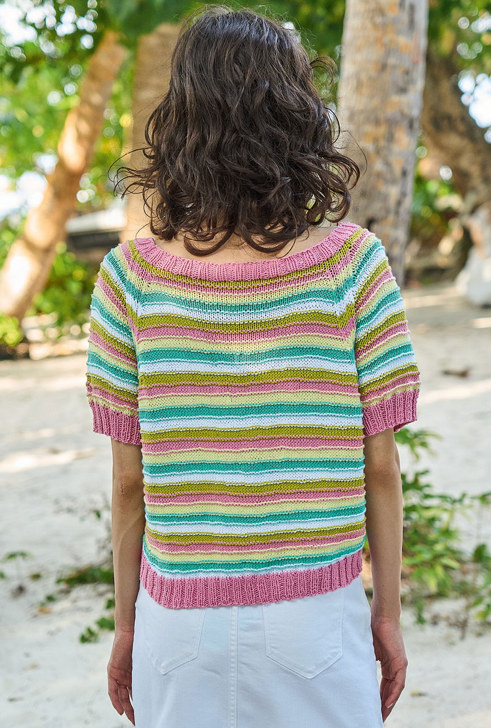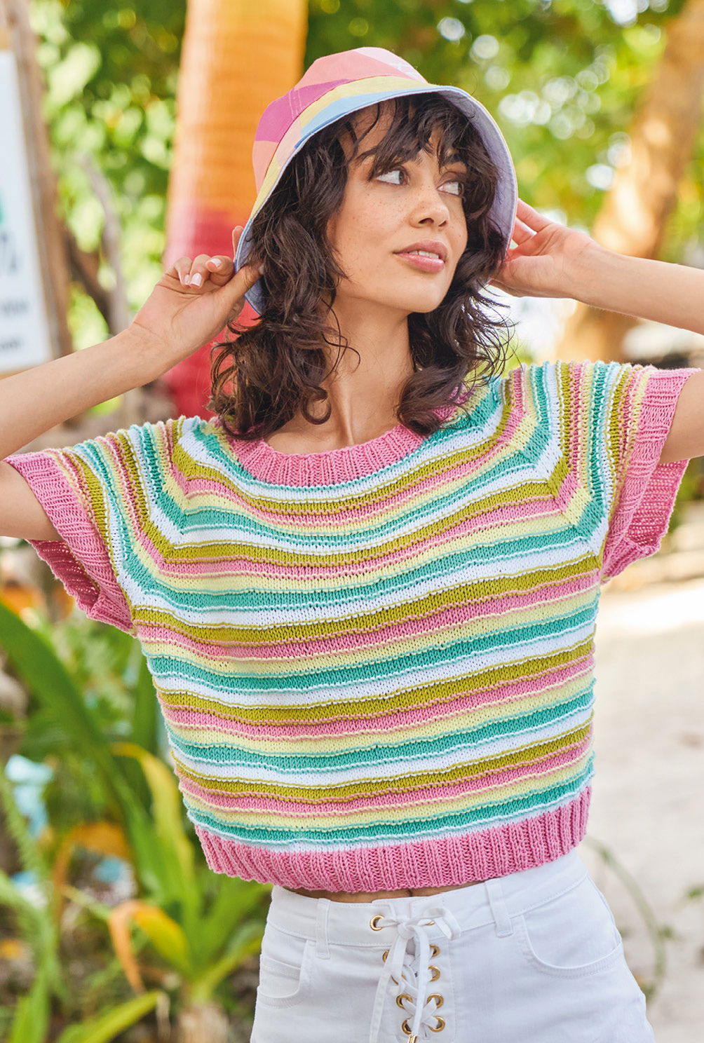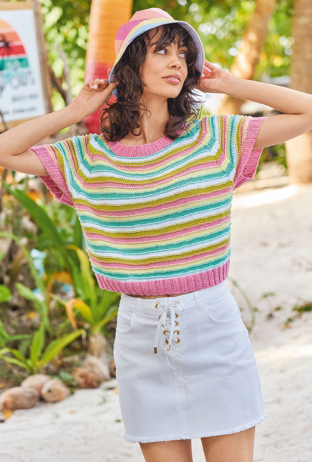 Mehr Nachhaltigkeit: Die ökologische Baumwolle dieses bunten Ringelshirts gibt rundum Wohlgefühl und trägt sich toll auf der Haut. Und auch der Raglanschnitt mit gut sichtbaren Abnahmen macht eine gute Figur. Das einfache Querrippenmuster betont die fröhlichen Ringel aufs Schönste und sorgt zusätzlich für jede Menge Strickspaß. Alle Teile werden einzeln und von unten nach oben gestrickt. Erst das Rippenbündchen in uni, dann weiter in der Streifen und Strukturmusterfolge. Sind alle vier Teile fertig gestrickt, werden noch die Nähte geschlossen und der Halsausschnitt erhält sein Rippenbündchen. Tipp: Dieser Pulli eignet sich auch ganz besonders gut zur Resteverwertung, denn die Streifenfolge lässt sich ganz nach Belieben erweitern und verändern.
