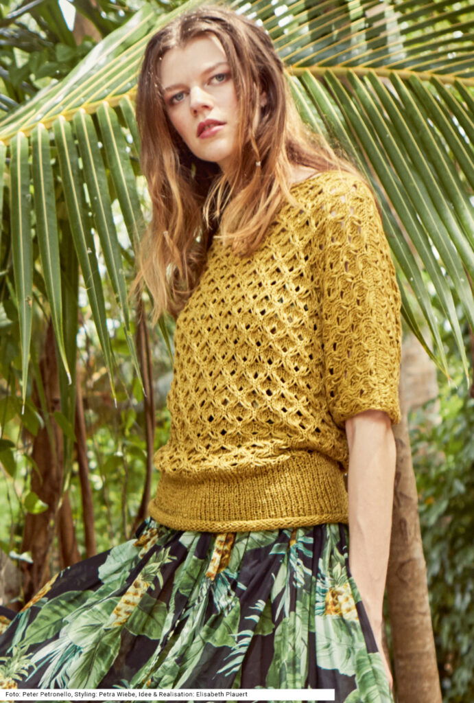Das Modell wird mit Nadelstärke Nr 4,5 und 5 gestrickt. Die Anleitung findest du für die Größe 36/38, 40/42 und 44/46.