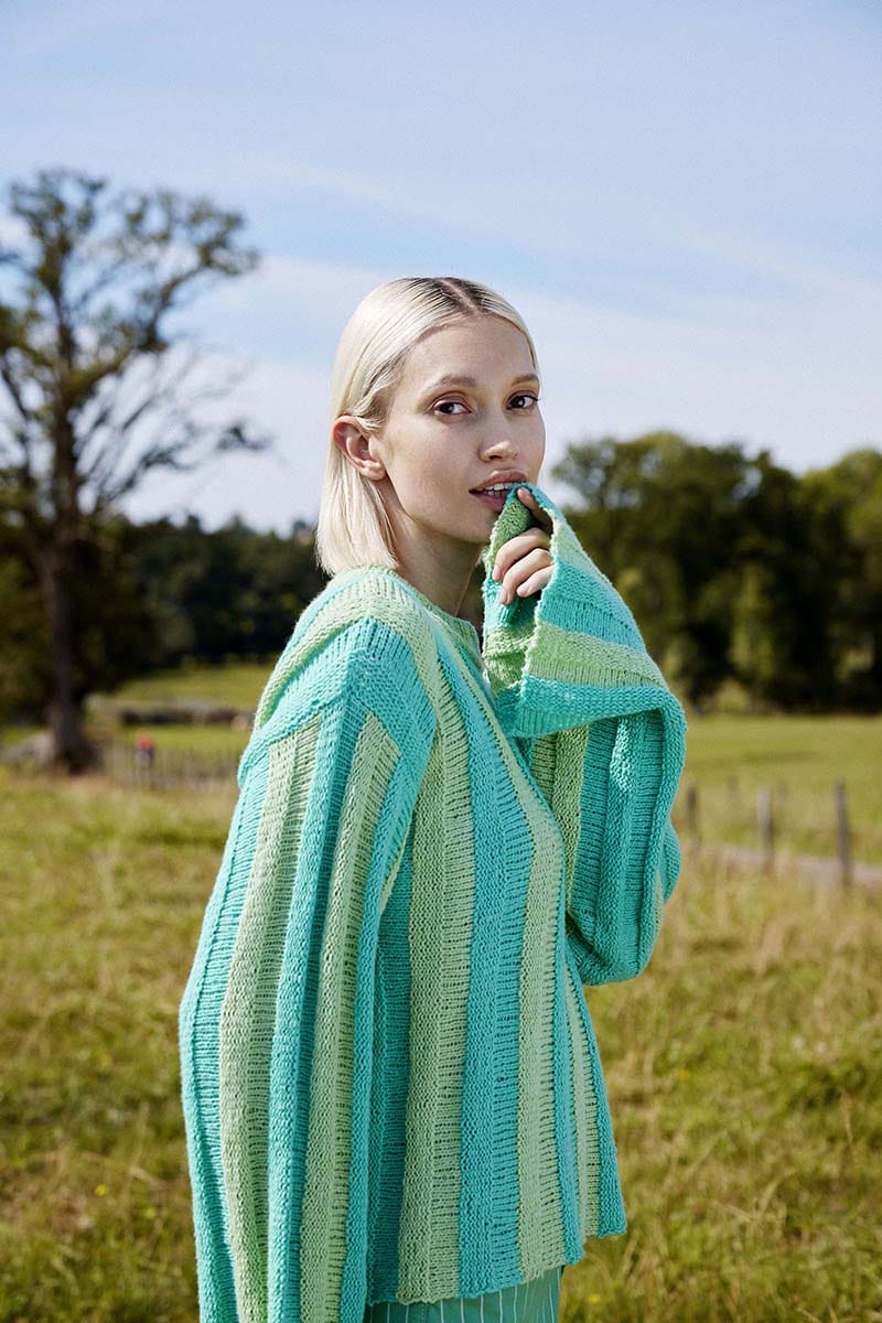 The DEEP BREATH sweater captures the soothing rhythm of knitting, mirroring the calming pattern of deep, steady breaths. Its design reflecting the visual rhythms found in nature, with each stitch flowing in harmonious cadence.