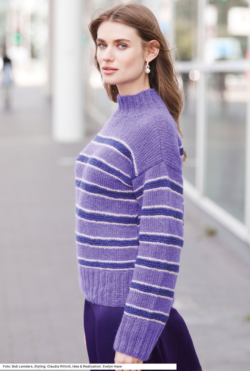 Dieser Streifenpulli ist ein absoluter Klassiker und Allrounder – dazu noch ein Modell, das auch für Strickanfänger geeignet ist! Die Bündchen sind im Rippenmuster gearbeitet, im Hauptteil wechseln sich kraus rechts und glatt rechts gestrickte Streifen ab. Dennoch ist das Modell ein echter Hingucker, denn das Garn sorgt für eine edle, sanft fließende Silhouette und die Farben sind perfekt aufeinander abgestimmt, bieten genau das richtige Maß an Kontrast und Harmonie.
