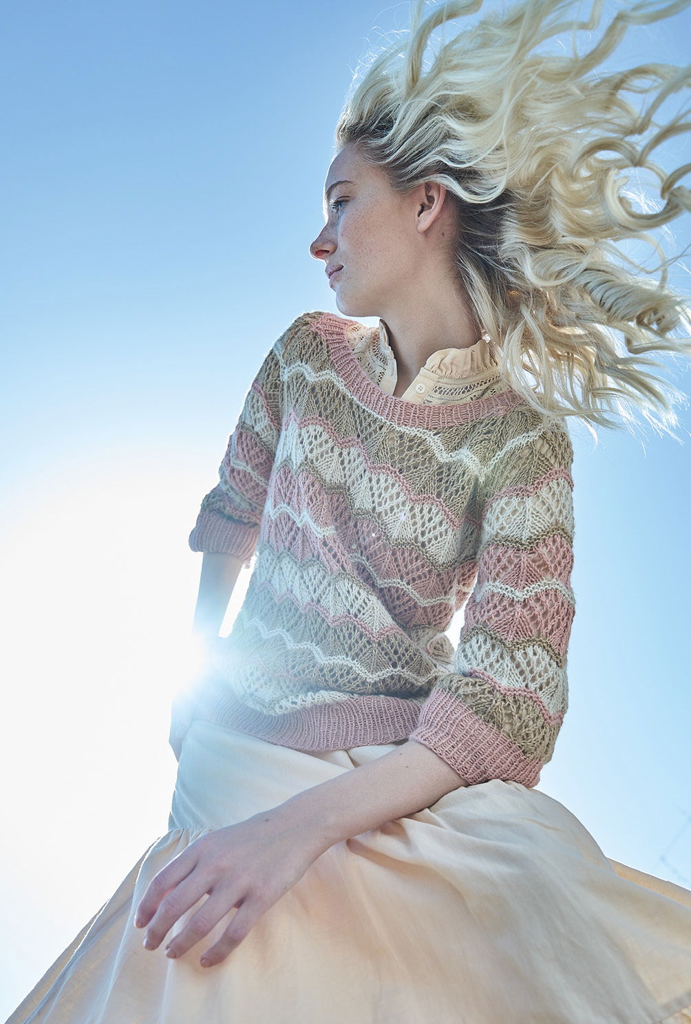 Wellenstrukturen sind einfach zu stricken und erzielen durch den raffinierten Einsatz unterschiedlicher Farbstreifen einen ganz individuellen Look. Hier sind es Rosa, Braun und Beige, die sich zur einem harmonischen Mix zusammentun und einen tollen Raglanpulli entstehen lassen, den es nicht von der Stange zu kaufen gibt. Das weiche Garn, das durch einen ganz zarten Flausch heraussticht, besteht hauptsächlich aus Baumwolle, zu der sich Alpaka, Seide und Schurwolle gesellen – ein spannende Mischung, die auch im Herbst Tragekomfort garantiert.