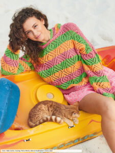 Jetzt schmeckt der Sommer nach Aprikose, Himbeere und Apfel. Kleiner Appetitanreger ist dieser sportliche Pulli, bei dem sich die Farben im regelmäßigen Streifendesign präsentieren. Die Basis bildet ein weiches, leicht aufgerautes Baumwollgarn, das sich angenehm auf der Haut trägt. Für das großflächige Rauten-Lochmuster findest du in unserer Anleitung eine übersichtliche Strickschrft. Die separat gestrickte Kapuze wird unter die Halsblende genäht und sorgt für den lässigen Auftritt.