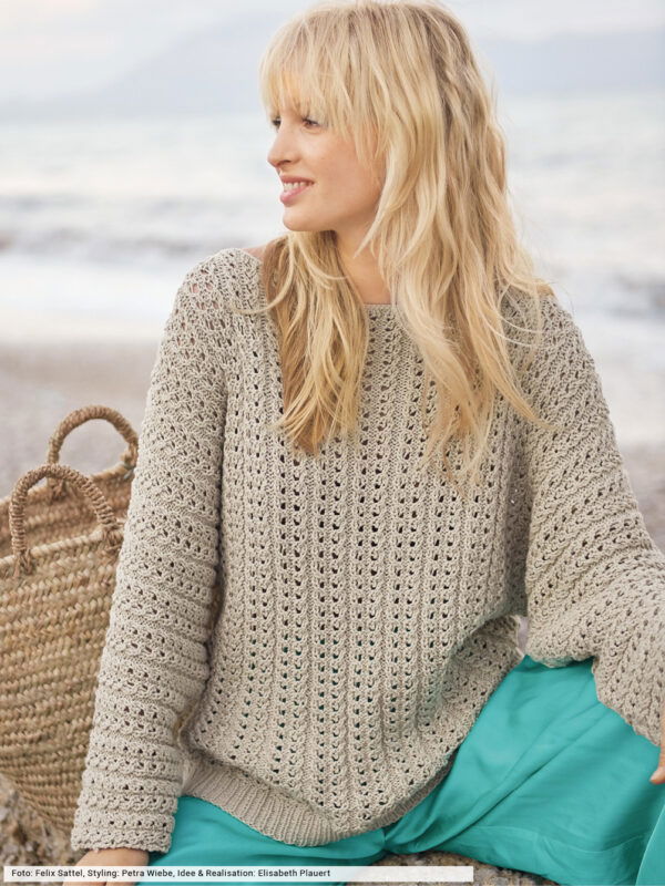 Quergestrickter Lochmusterpulli