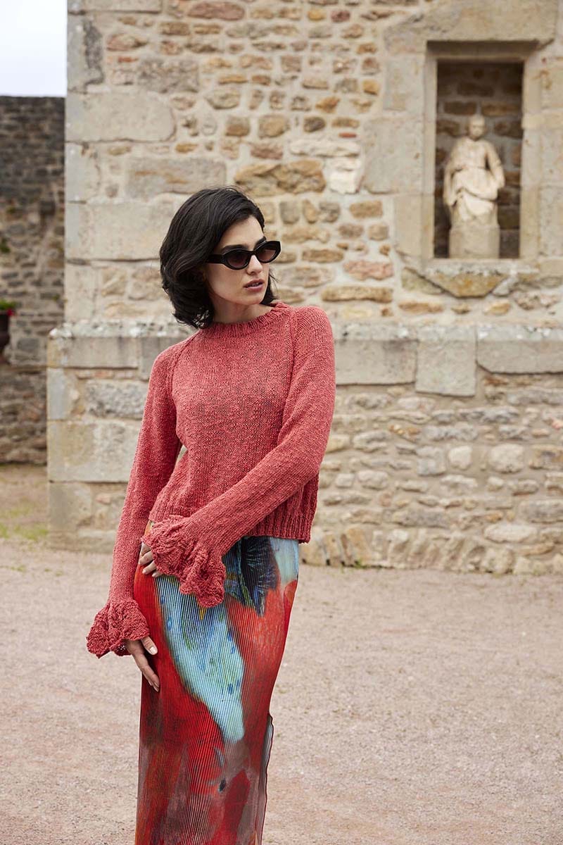 With exquisite lace detailing at the cuffs that add a romantic touch to the design, the ENCHANTING sweater truly lives up to its name. The lace pattern is easy to memorize but transforms this basic sweater into a statement piece for your perfect summer romance.