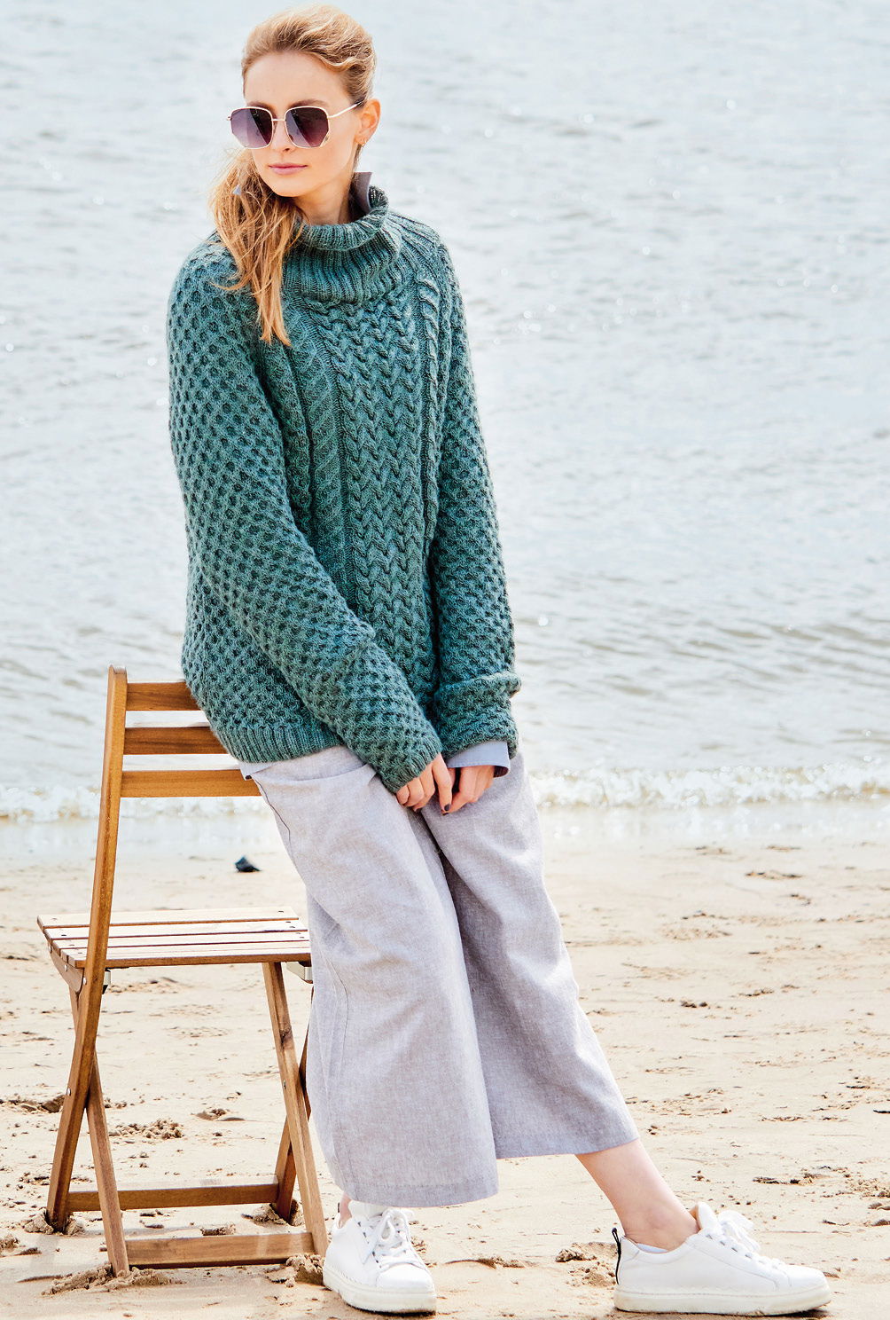 Die Anleitung für diesen Pullover ist in den Größen 38/40, 42/44 und 46/48 verfügbar.