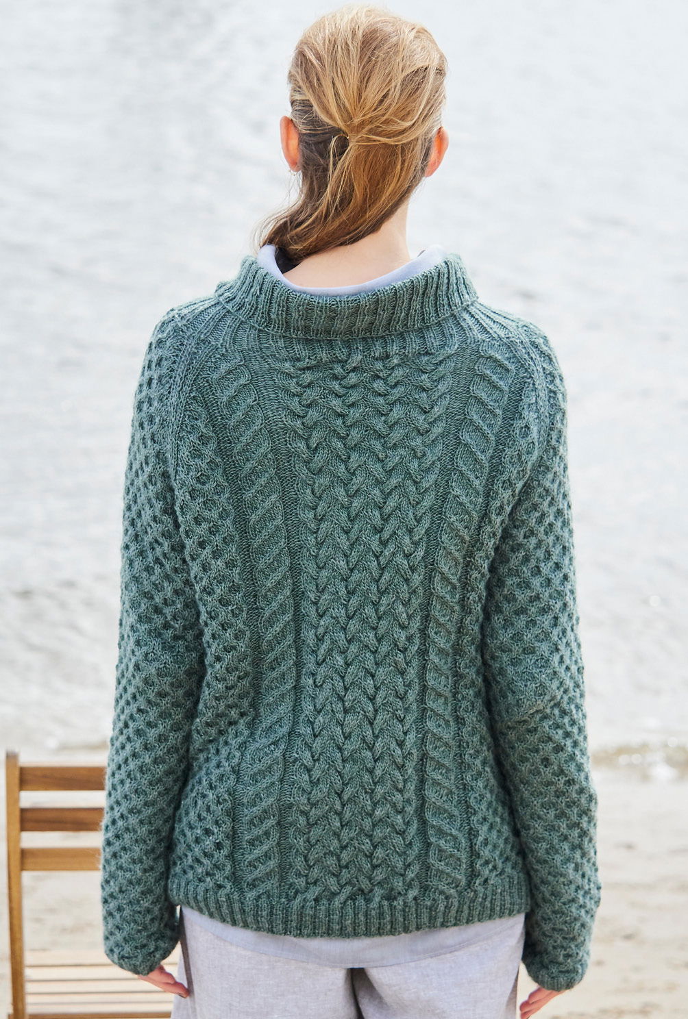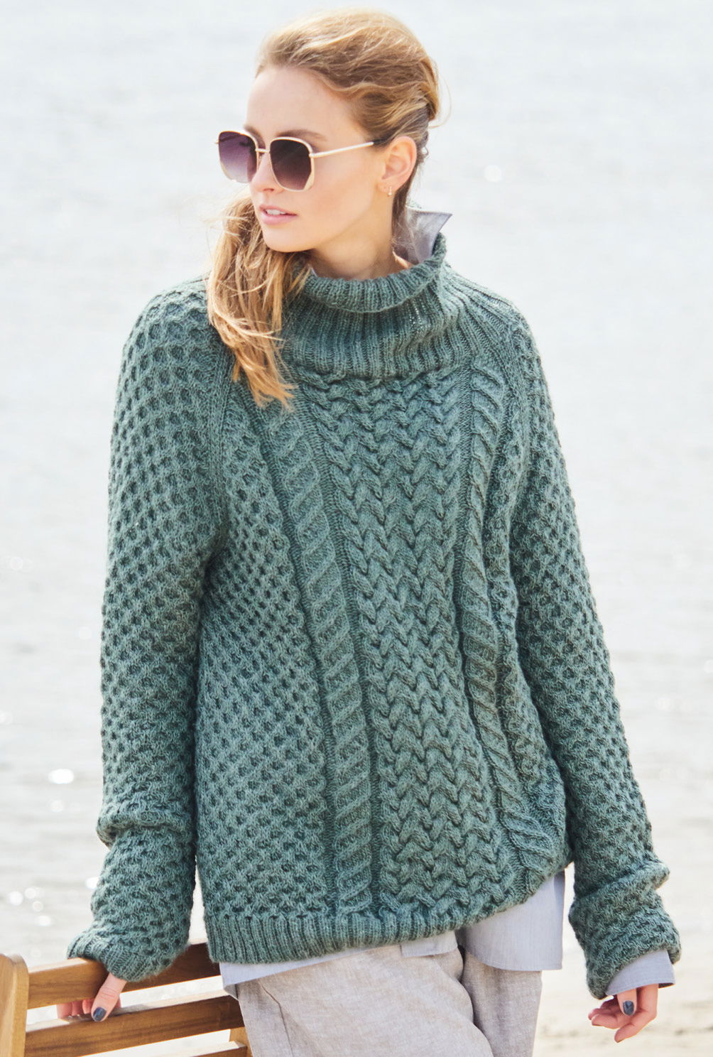 Sabrina Strickjournal Grüner Raglanpulli im Zopf/Wabenmuster