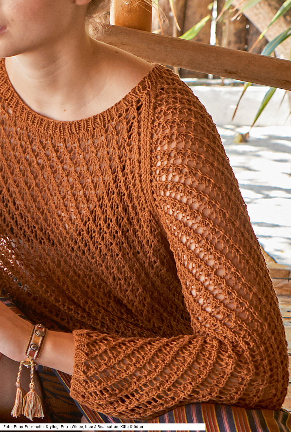 Die warmen Gewürztöne in Kombination mit natürlichen Seidenfasern verleihen unserem mandelbraunen Raglanpullover eine luftige Textur für sommerliche Leichtigkeit . Das schräge Ajourmuster sorgt für eine ansprechende Transparenz, die Eleganz und Komfort vereint. Dieses Allroundtalent ist ein Muss für jede Sommergarderobe und besticht durch seine Vielseitigkeit und seinen edlen Look. Ein zeitloses Stück, das Strickkunst und modisches Design perfekt miteinander verbindet.