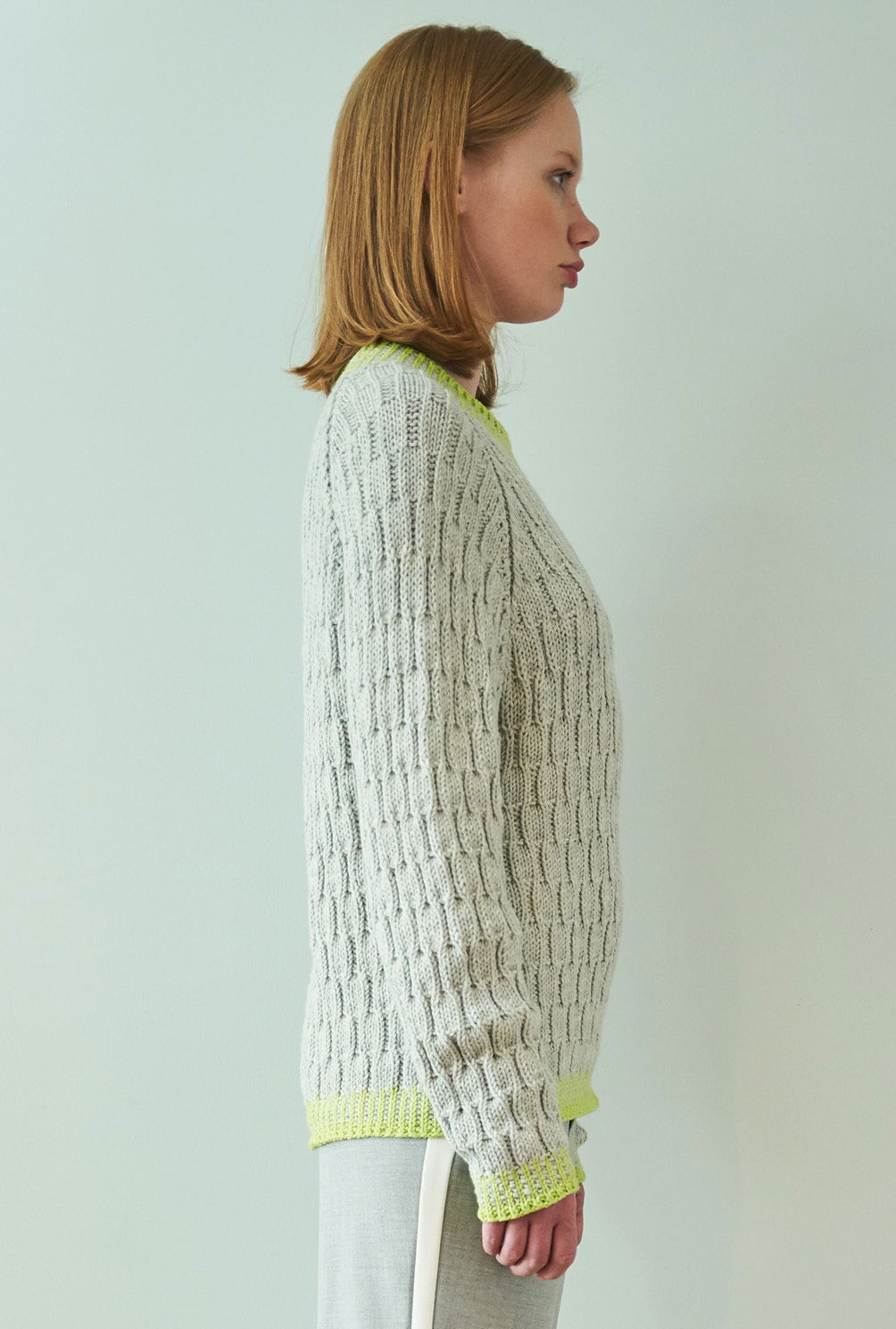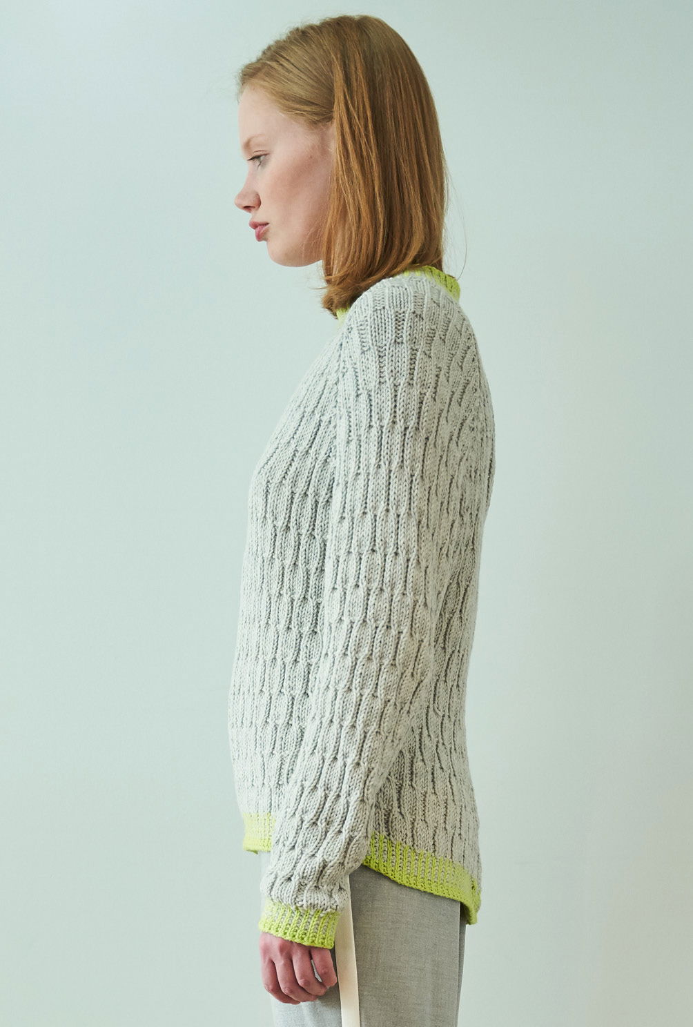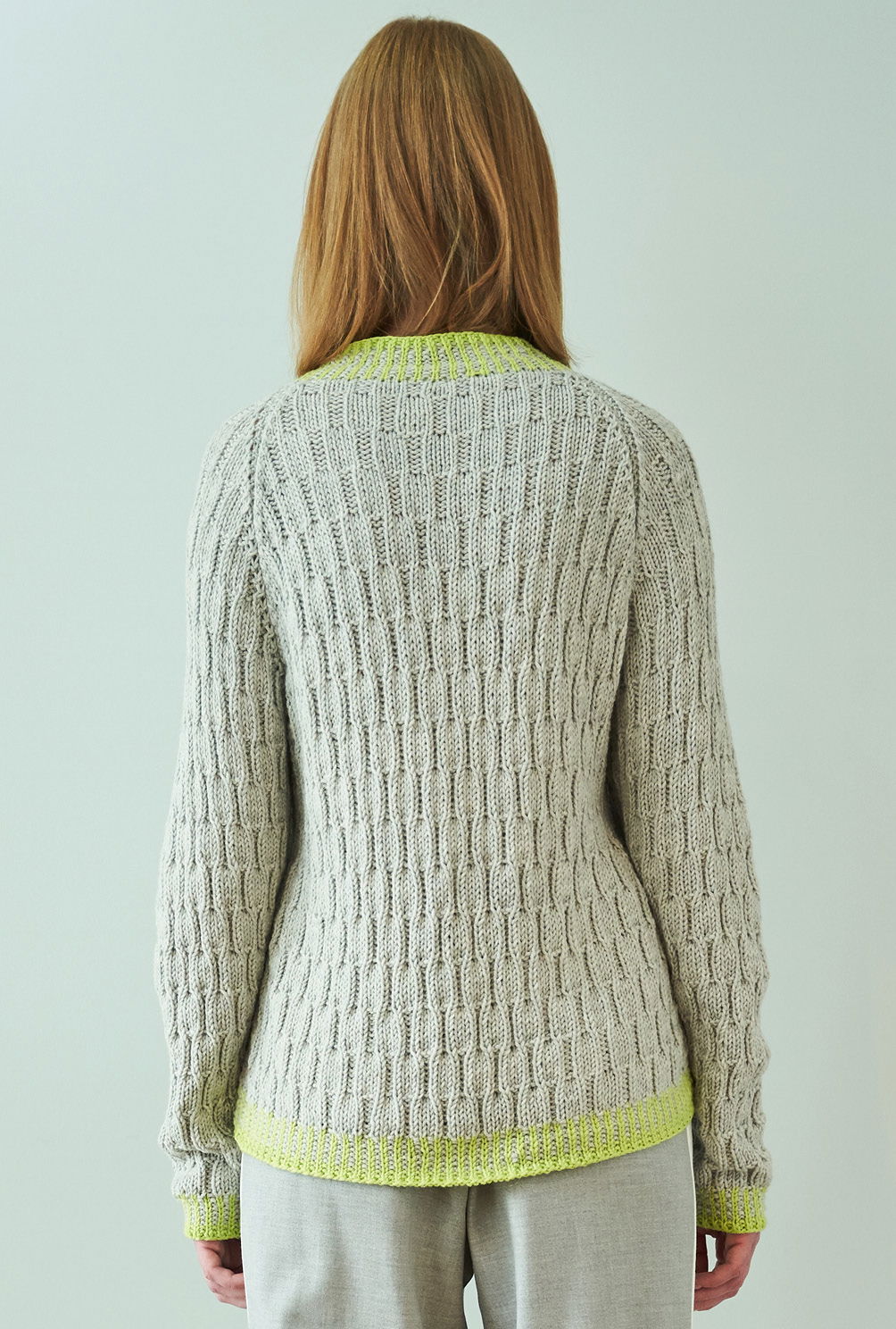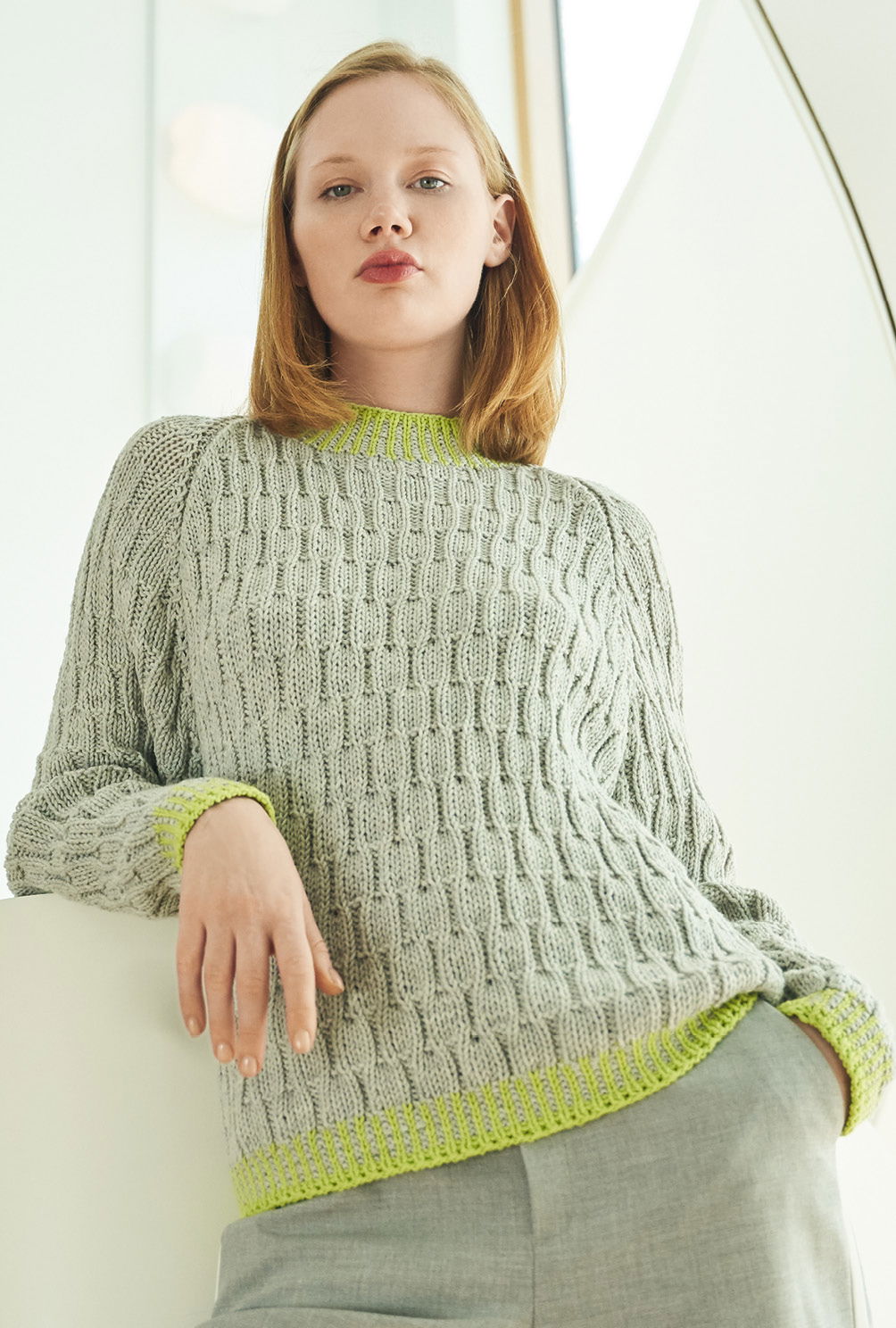 Anfängerfreundlich: Die Wabenstruktur dieses sportiven Raglanpullis entsteht einfach aus rechten und linken Maschen. Und auch die zweifarbigen Bündchen sind kein Hexenwerk, die unbenutzte Farbe wird einfach auf der Arbeitsrückseite mitgeführt. Mit Nadelstärke 5 und reiner Schurwolle strickt es sich zudem ganz entspannt und zügig. Gestrickt wird in einzelnen Teilen von unten nach oben. Das effektvolle Strukturmuster besteht aus einem Rapport von sechs Maschen und ist ausführlich Reihe für Reihe in der Anleitung beschrieben. Sind alle vier Teile fertig gestrickt, werden noch alle Nähte geschlossen und aus dem Halsausschnitt die schmale Blende im Rippenmuster herausgestrickt.